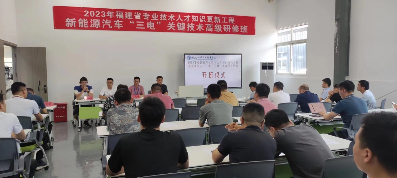 針對(duì)我省近年來(lái)高速發(fā)展的新能源汽車(chē)產(chǎn)業(yè),依托我校在新能源汽車(chē)技術(shù)領(lǐng)域辦學(xué)成果的優(yōu)勢(shì)。2023年福建省專業(yè)技術(shù)人才知識(shí)更新工程關(guān)于新能源汽車(chē)“三電”關(guān)鍵技術(shù)高級(jí)研修班(簡(jiǎn)稱“高研班”)于8月3日在我校順利舉行開(kāi)班儀式。