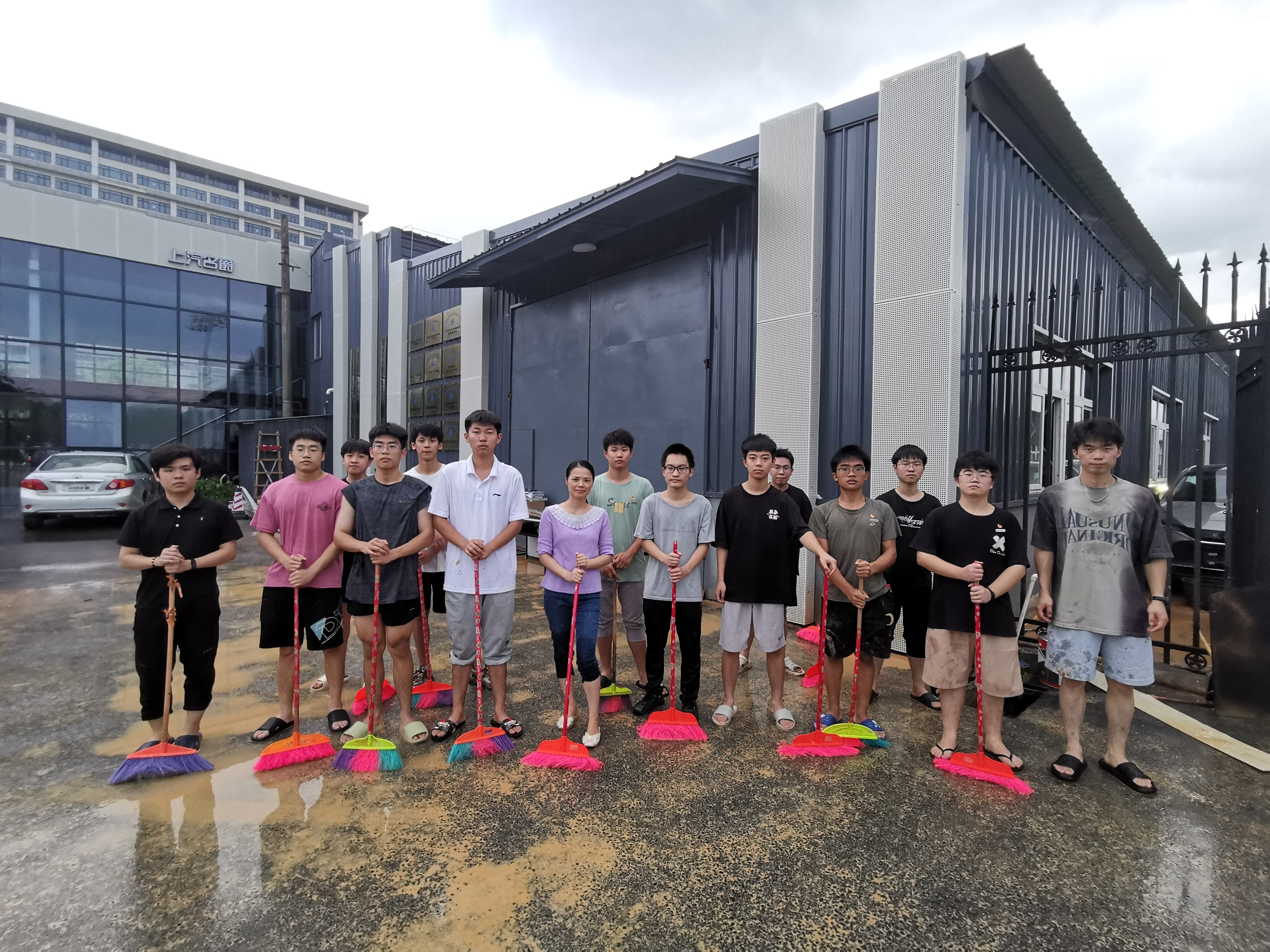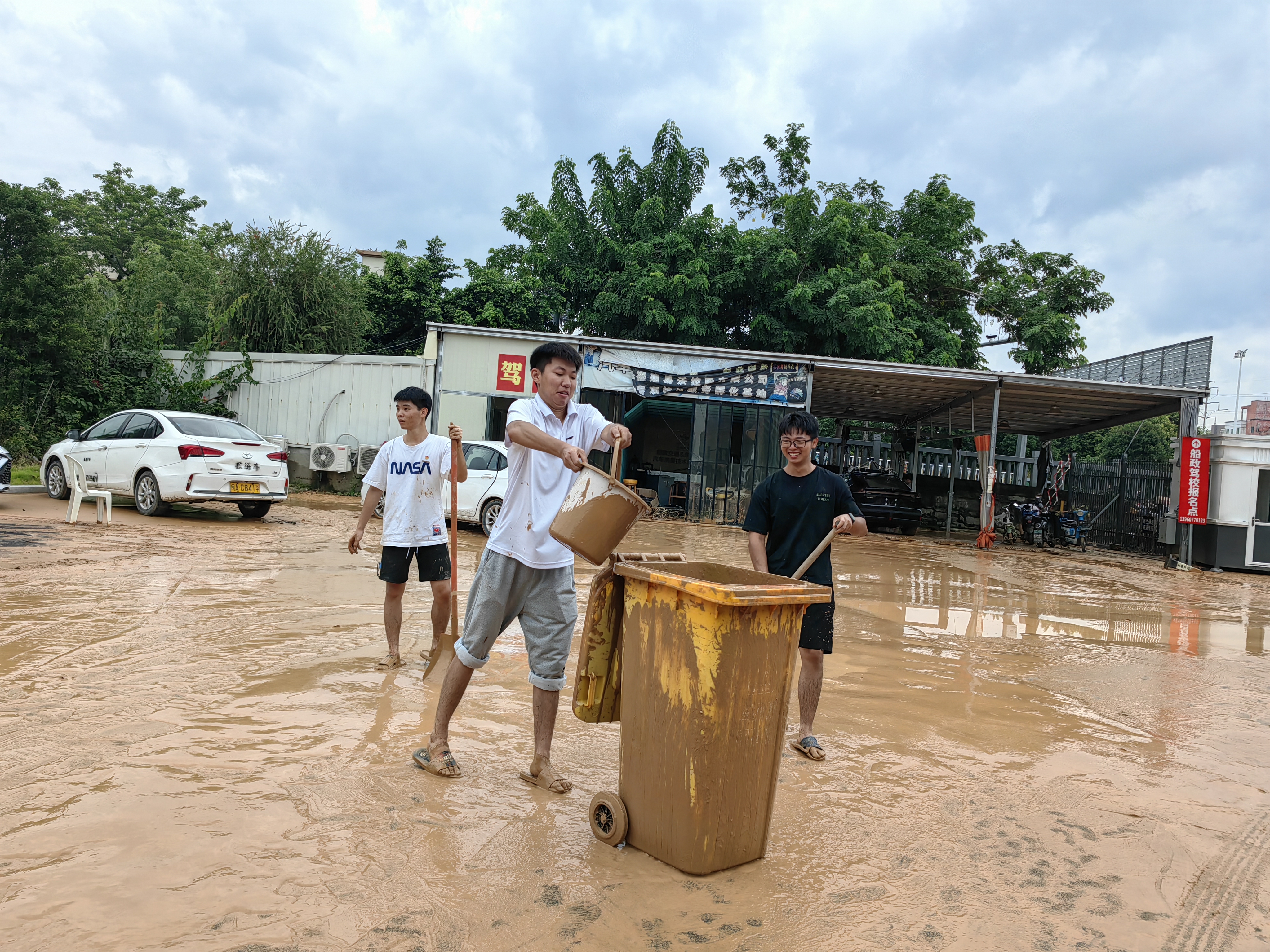 臺風“??眮韯輿皼?,福州遭遇暴雨襲擊。受暴雨影響,汽車學院中區(qū)新能源汽車產(chǎn)教融合示范園、學生宿舍樓一樓均出現(xiàn)泡水積水,嚴重影響到學校的教學工作和學生的學習生活。特別是中區(qū)的實訓室,淤泥堆積嚴重,清潔工作難度大。汽車學院黨總支積極響應校黨委號召,組織全體教職工、近600人次的學生志愿者,傾盡全力參與到臺風暴雨后的實訓室及校園的清潔修復工作。攜手同心,“人進淤泥退”,經(jīng)過近一天的努力,在最短時間內(nèi)恢復校園學習生活秩序。