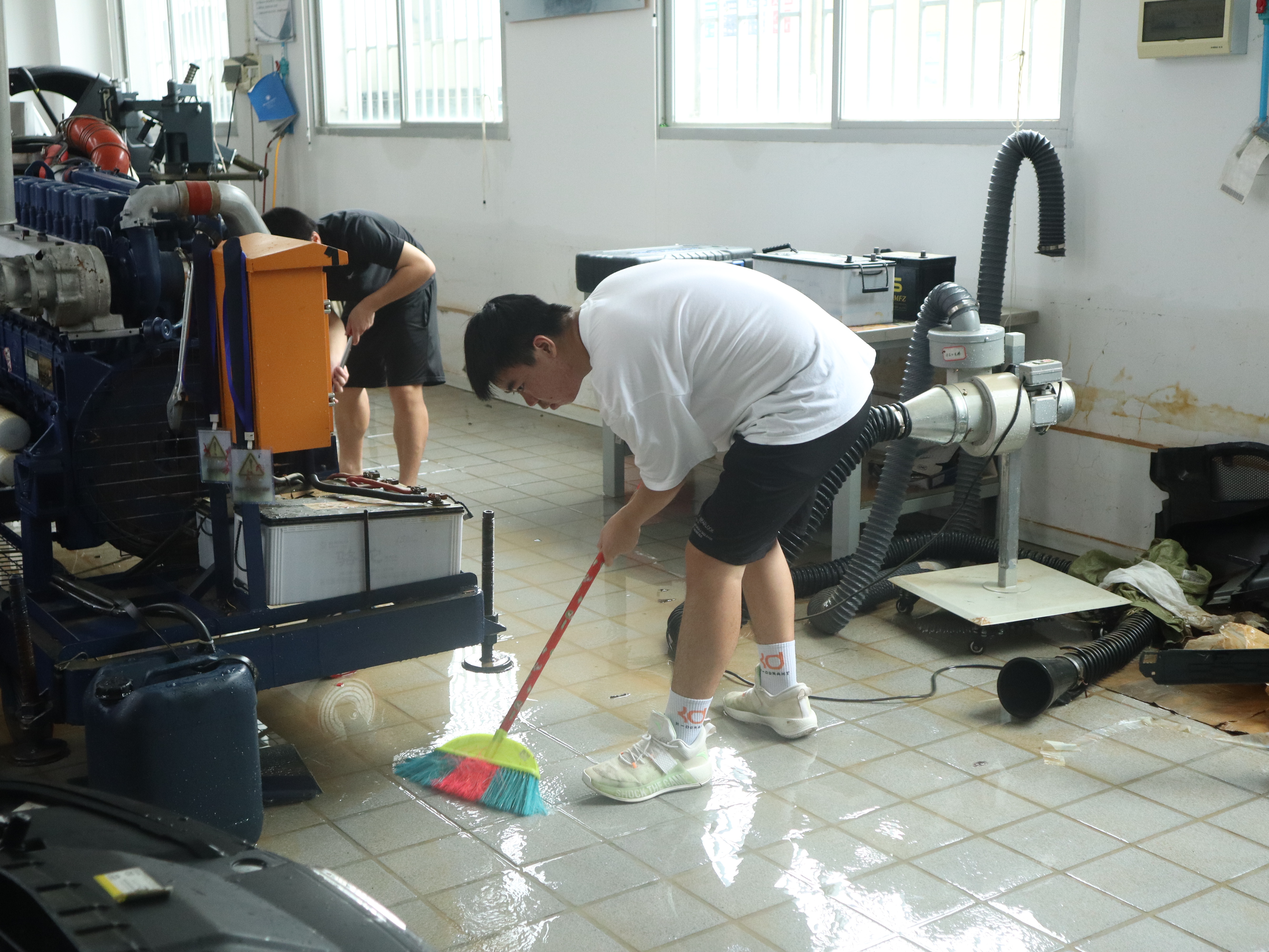 “人進淤泥退”,在汽車學院師生上下齊心協(xié)力的努力之下,實訓室和校園逐步恢復到了干凈整潔的面貌。感謝為汽車學院的災后修復工作付出努力的老師和同學們!