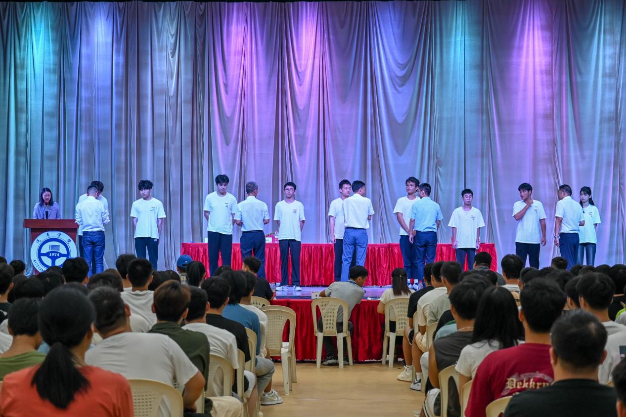 新生代表帶領(lǐng)全體新生莊嚴(yán)宣誓