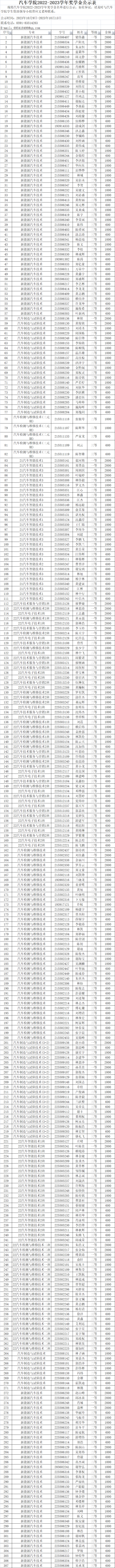 汽車學(xué)院2022-2023學(xué)年獎學(xué)金公示表