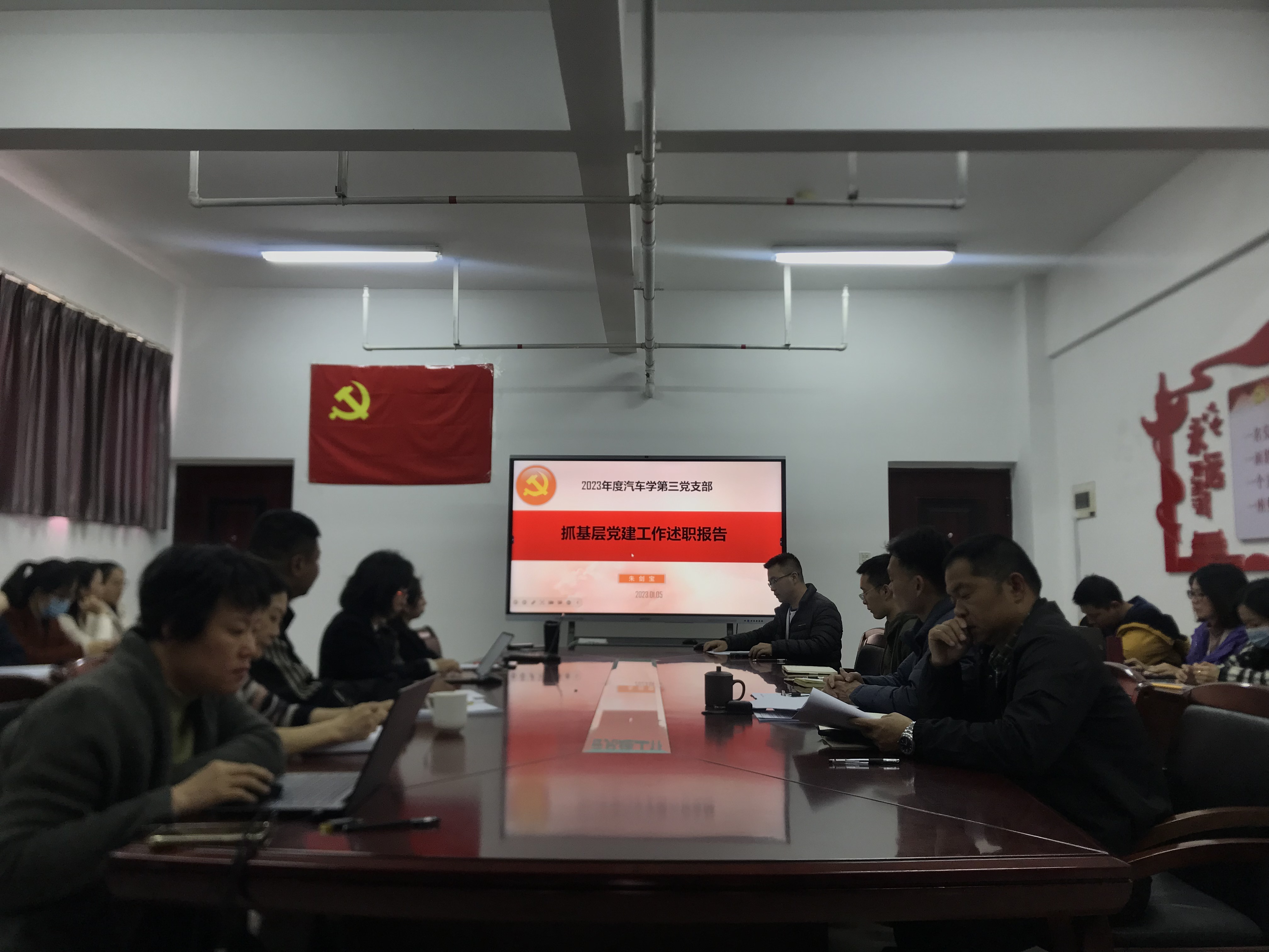 會議由汽車學(xué)院黨總支書記蔡華錦主持。汽車學(xué)院四個黨支部的書記依次進(jìn)行現(xiàn)場述職。他們聚焦學(xué)習(xí)貫徹習(xí)近平新時代中國特色社會主義思想和黨的二十大精神,圍繞主題教育、落實基層黨建工作責(zé)任、推動黨建“一融雙高”破解發(fā)展難題情況、主要做法和特色成果進(jìn)行匯報,同時剖析了工作中存在的問題和不足,提出了整改措施和2024年工作思路。