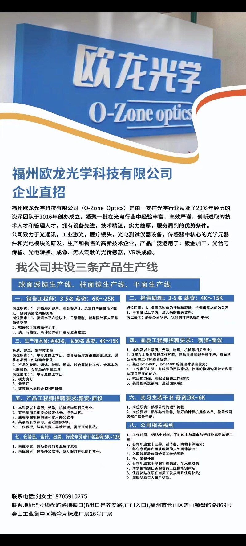 福州歐龍光學(xué)科技有限公司企業(yè)直招