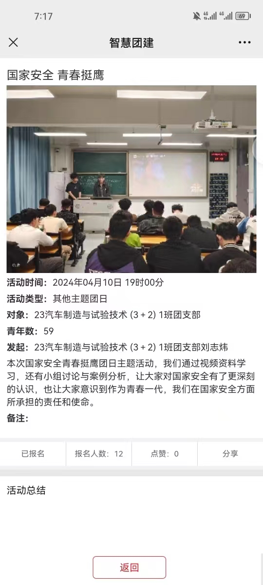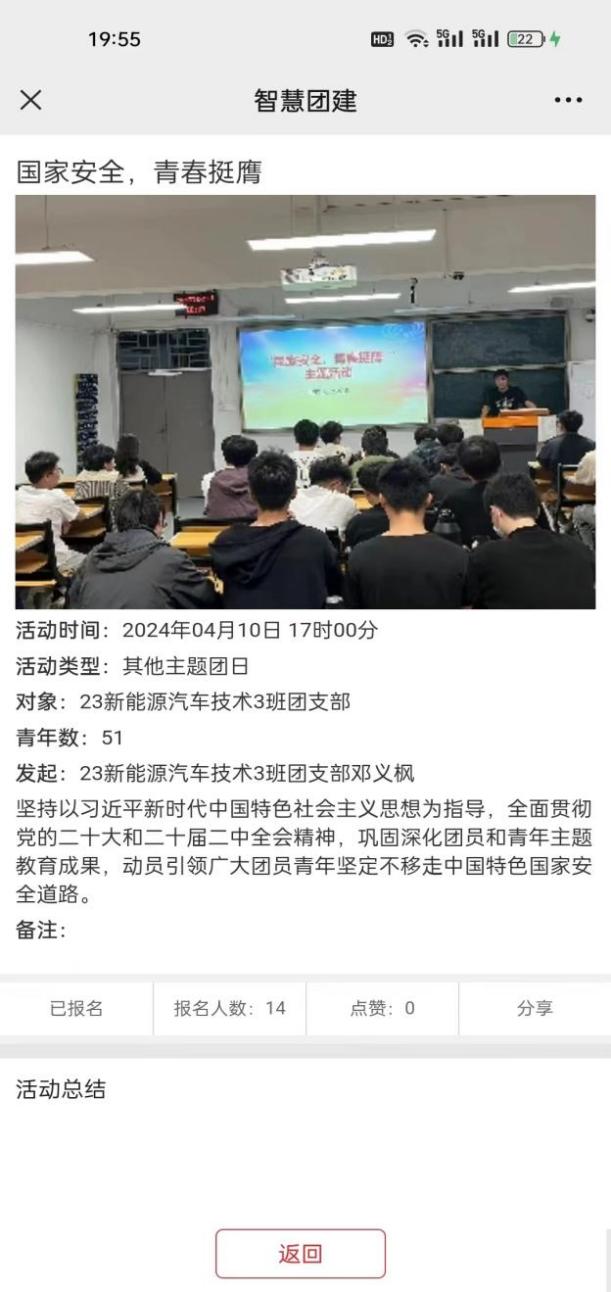 各團(tuán)支部結(jié)合智慧團(tuán)建系統(tǒng),通過線上線下雙渠道組織班級同學(xué)參與學(xué)習(xí),以觀看視頻、PPT國家安全知識講解、案例分析和同學(xué)之間互動討論等多種形式,引導(dǎo)團(tuán)員和青年們深入了解國家安全的基本內(nèi)涵,當(dāng)前面臨的復(fù)雜形勢以及在維護(hù)國家安全中的責(zé)任與擔(dān)當(dāng)。深刻體悟到維護(hù)國家安全,每個人都不是局外人,每個人都應(yīng)是參與者、踐行者的思想自覺,攜手共筑國家防線。
