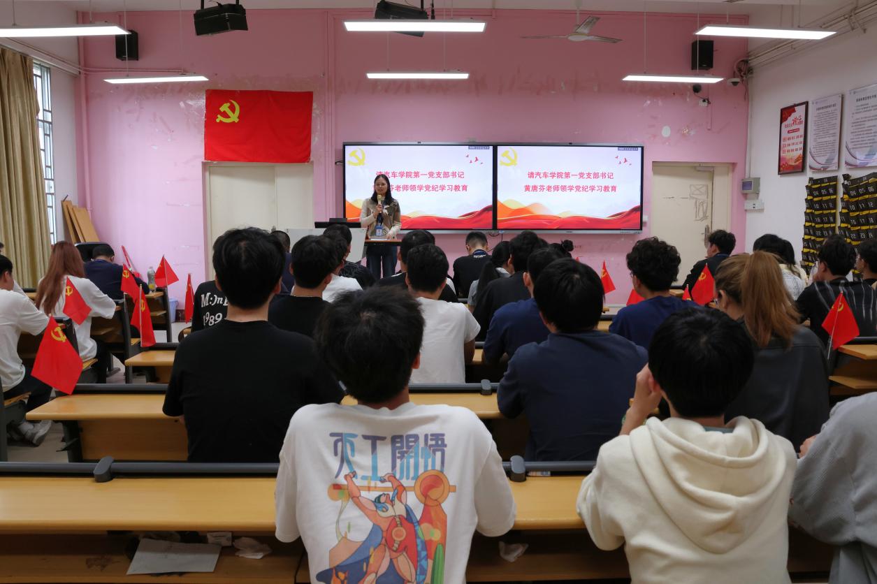 汽車學(xué)院第一黨支部書記黃唐芬老師傳達(dá)了學(xué)校黨紀(jì)學(xué)習(xí)教育的有關(guān)部署和要求,領(lǐng)學(xué)了新修訂的《中國(guó)共產(chǎn)黨紀(jì)律處分條例》,結(jié)合實(shí)際案例闡述了學(xué)生黨員如何遵守黨的“六大紀(jì)律”,引導(dǎo)全體畢業(yè)生黨員進(jìn)一步學(xué)紀(jì)、知紀(jì)、明紀(jì)、守紀(jì),時(shí)刻牢記黨員身份,發(fā)揮先鋒模范作用。她指出,作為大學(xué)生黨員,要嚴(yán)格遵守《中國(guó)共產(chǎn)黨章程》和黨的各項(xiàng)規(guī)章制度,樹牢紀(jì)律意識(shí),嚴(yán)守紀(jì)律規(guī)矩,扣好“第一??圩印?。
