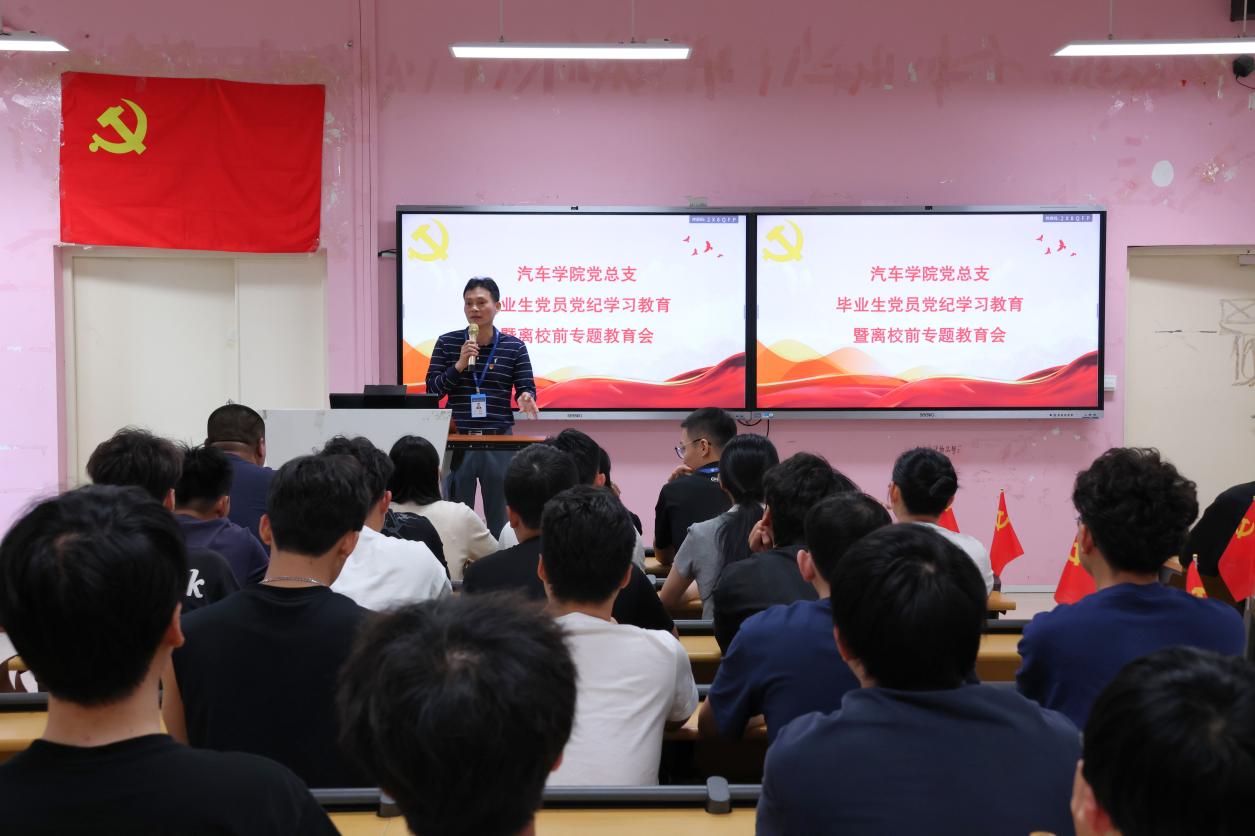 為進(jìn)一步加強(qiáng)畢業(yè)生黨員黨紀(jì)教育,引導(dǎo)畢業(yè)生黨員進(jìn)一步堅(jiān)定理想信念,2024年4月24日上午,汽車學(xué)院黨總支在自強(qiáng)樓1-3教室召開2024屆畢業(yè)生黨員黨紀(jì)學(xué)習(xí)教育暨離校專題教育會(huì),汽車學(xué)院黨總支蔡華錦書記、組織員何杰老師、第一學(xué)生黨支部黃唐芬書記、團(tuán)委書記、第二學(xué)生黨支部書記余晨煒老師,畢業(yè)班輔導(dǎo)員施文、黃見山老師及汽車學(xué)院全體畢業(yè)生黨員38人參加了會(huì)議。