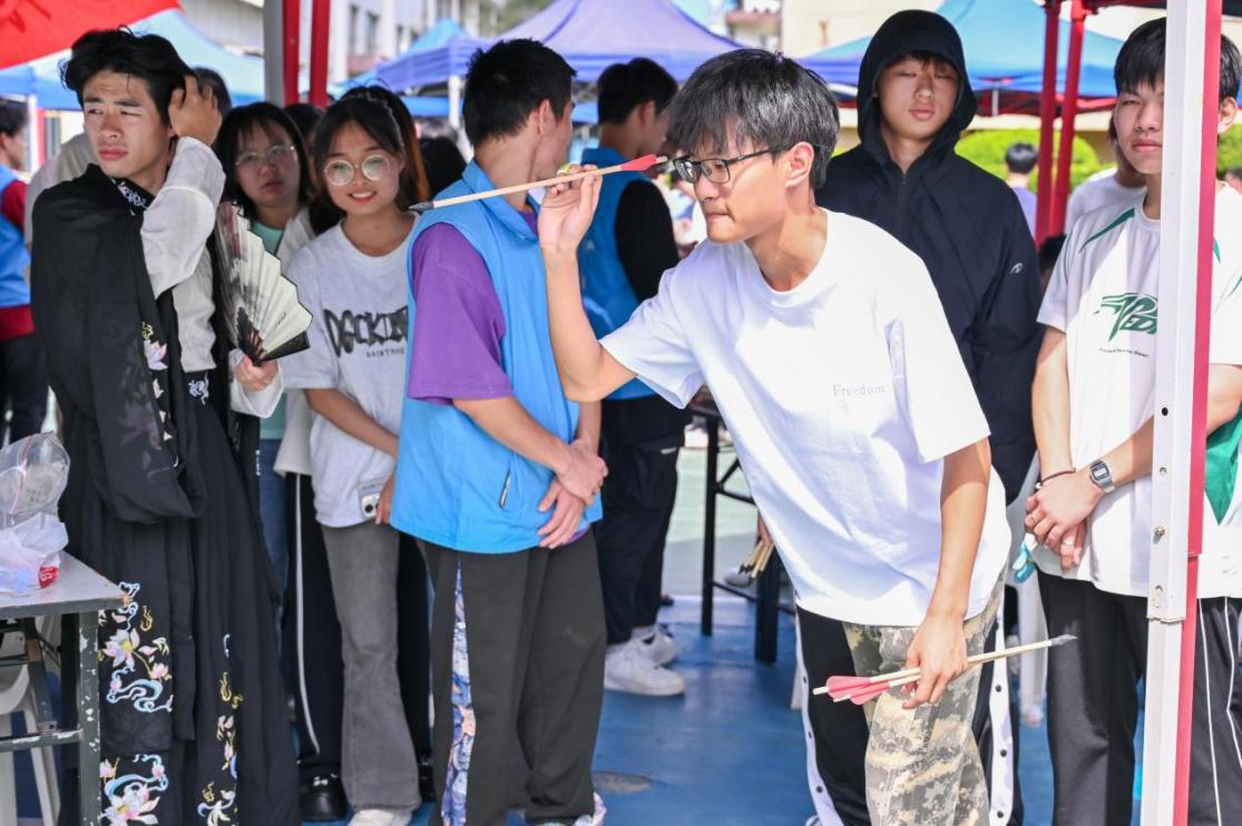 射箭起源于史前時代,最初用于狩獵和戰(zhàn)爭。隨著時間的推移,它在漢朝發(fā)展成為一項體育運動。成為士大夫的禮儀競賽活動。射箭與投壺不僅鍛煉身體,提高專注力和協(xié)調(diào)性,還能增強心理素質(zhì),培養(yǎng)耐心和冷靜。這項運動在世界各地都有愛好者,它跨越文化和國界,成為一種普遍的休閑和競技方式。同學們屏氣凝神,全神貫注,希望這次的投壺能夠順利,不服輸?shù)臍鈩菰谀樕细@得汽車學子的朝氣蓬勃。