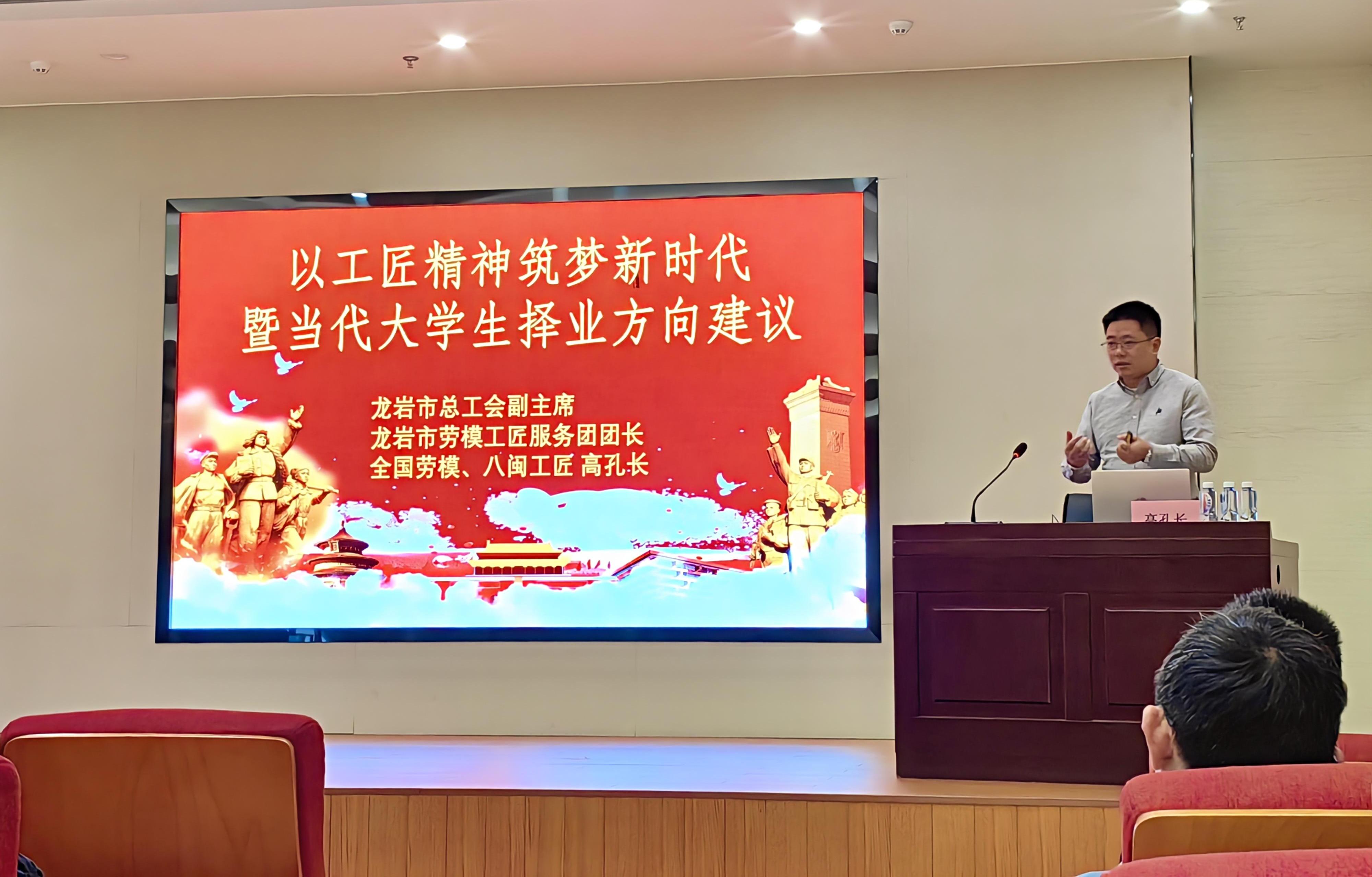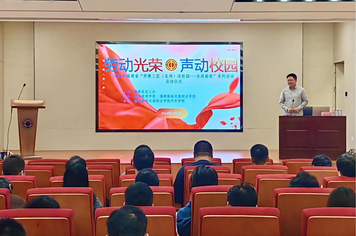 為深入學習宣傳貫徹黨的二十屆三中全會精神,大力弘揚勞模精神、勞動精神和工匠精神,引導廣大師生牢固樹立正確的人生觀、價值觀和勞動觀,12月4日下午,汽車學院在南區(qū)藝新樓304會議室舉行“勞動光榮·聲動校園”----2024年福建省“勞模工匠(名師)進校園---走進船政”系列活動,本次活動邀請到全國勞動模范,享受國務院政府特殊津貼專家,福建新龍馬汽車股份有限公司高孔長先生作主題為《以工匠精神筑夢新時代暨當代大學生擇業(yè)方向建議》的專題講座,汽車學院全體教職工和學生百余人參加。