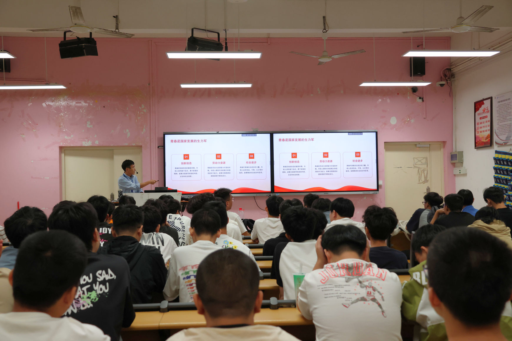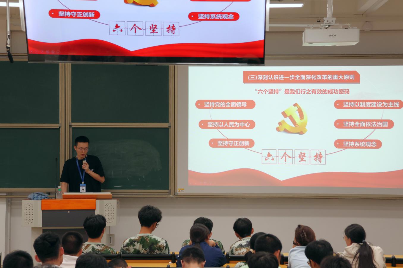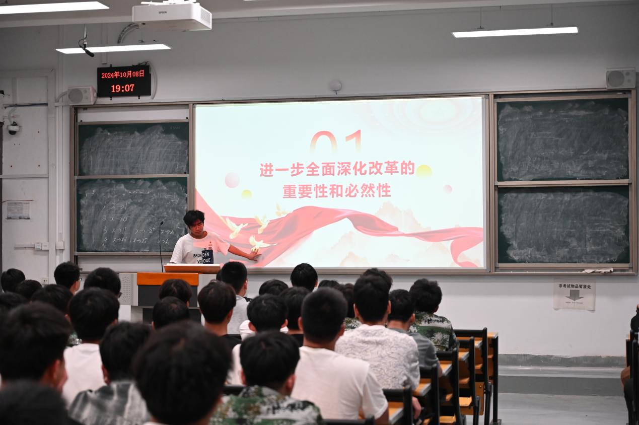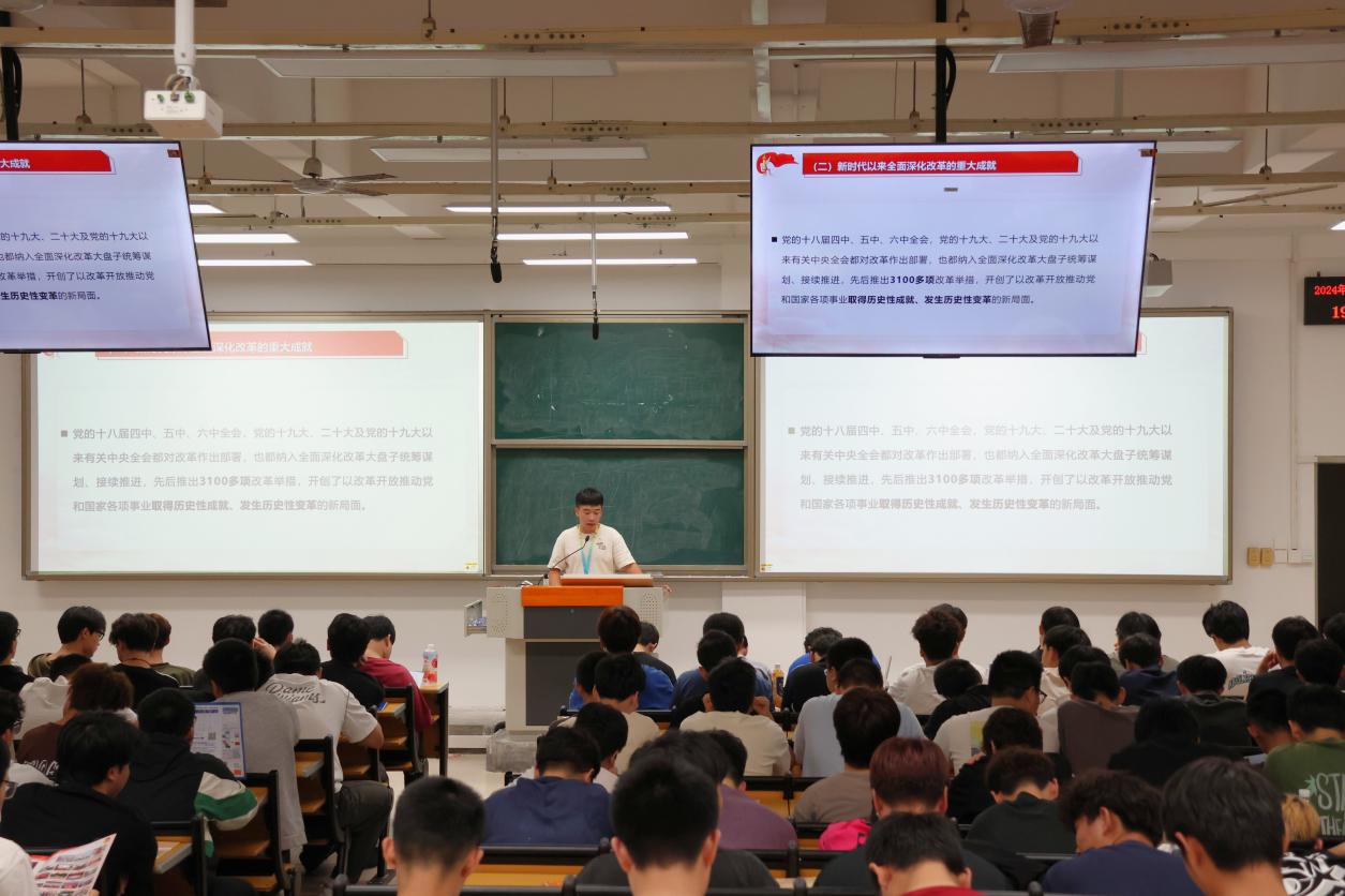 施文老師主要圍繞“黨的二十屆三中全會(huì)精神”為主題宣講,通過(guò)深入闡述黨的二十屆三中全會(huì)的豐富內(nèi)涵、重要意義、實(shí)踐要求等三個(gè)方面,進(jìn)一步帶領(lǐng)廣大青年學(xué)子了解黨的二十屆三中全會(huì)的歷史意義、現(xiàn)實(shí)意義、理論意義,激勵(lì)同學(xué)們奮發(fā)篤行,將個(gè)人的青春夢(mèng)想融入實(shí)現(xiàn)中華民族偉大復(fù)興的中國(guó)夢(mèng)之中,不負(fù)韶華,不負(fù)時(shí)代,以實(shí)際行動(dòng)書(shū)寫(xiě)無(wú)愧于黨和人民的青春華章,爭(zhēng)做德智體美勞全面發(fā)展的社會(huì)主義建設(shè)者和接班人。