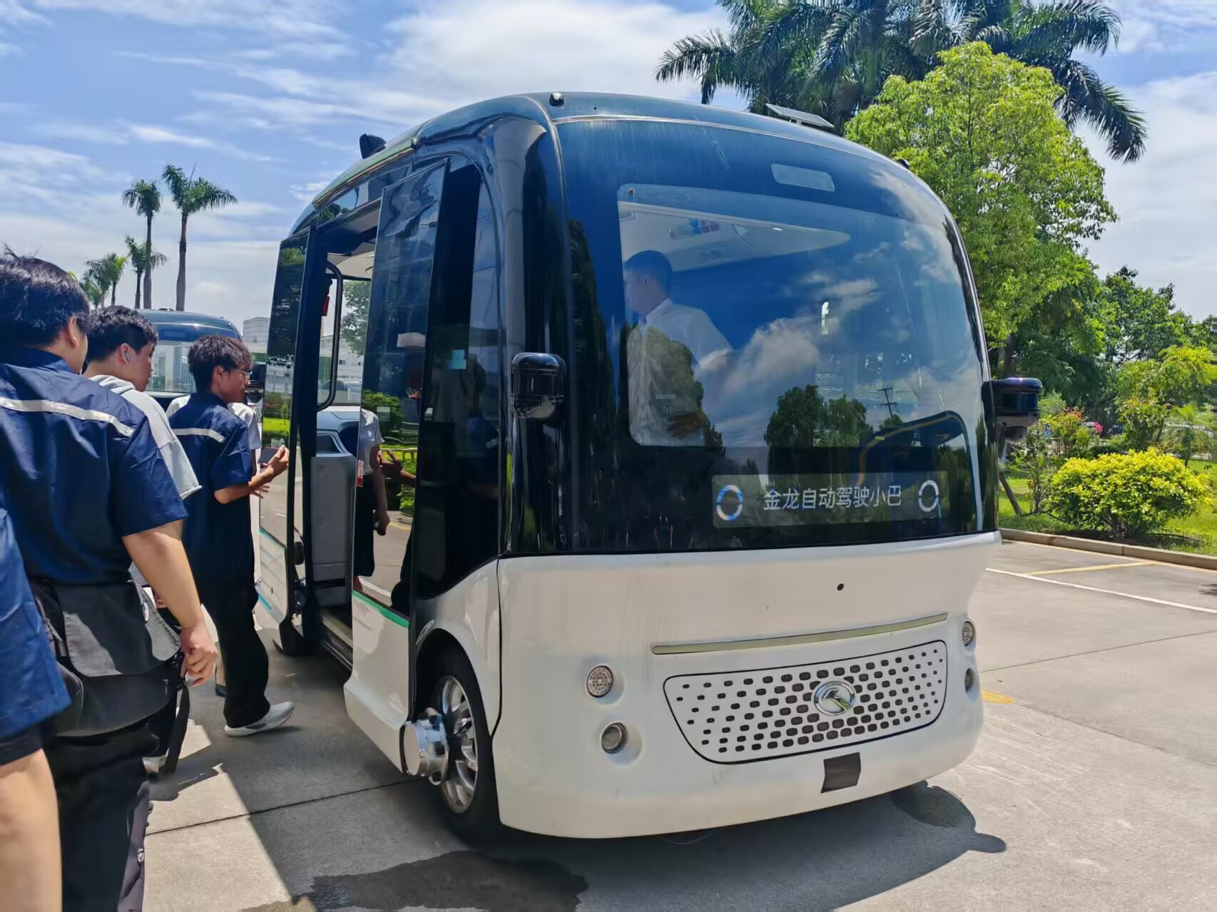 “加速平順、避障精準(zhǔn),智能座艙的透明車窗實時顯示路況信息,仿佛置身未來交通場景!”學(xué)生王啟龍在試乘后感嘆。廈門金龍技術(shù)人員介紹,阿波龍的“5G云代駕”功能可遠程接管車輛,這一技術(shù)將極大提升海外復(fù)雜環(huán)境下的服務(wù)響應(yīng)效率,成為訂單班學(xué)員未來需掌握的核心技能之一。