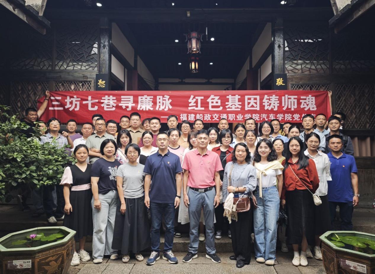 為深入貫徹中央八項規(guī)定精神,筑牢黨員教師廉潔自律思想防線,傳承紅色基因,福建船政交通職業(yè)學(xué)院汽車學(xué)院黨總支于2025年6月4日組織全體黨員教師,赴三坊七巷開展“三坊七巷尋廉脈,紅色基因鑄師魂”學(xué)習(xí)教育現(xiàn)場教學(xué),先后參觀了三坊七巷歷史人物勤廉館與中共福州市委革命歷史陳列館。