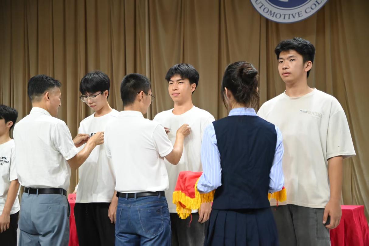 緊接著,在新生代表的帶領(lǐng)下,全體2025級新生進行莊嚴宣誓。鏗鏘有力的誓言回蕩在文體中心,彰顯著新生們對未來的堅定信念和為汽車事業(yè)奮斗的決心,也標志著他們正式開啟了在汽車學院的逐夢之旅。