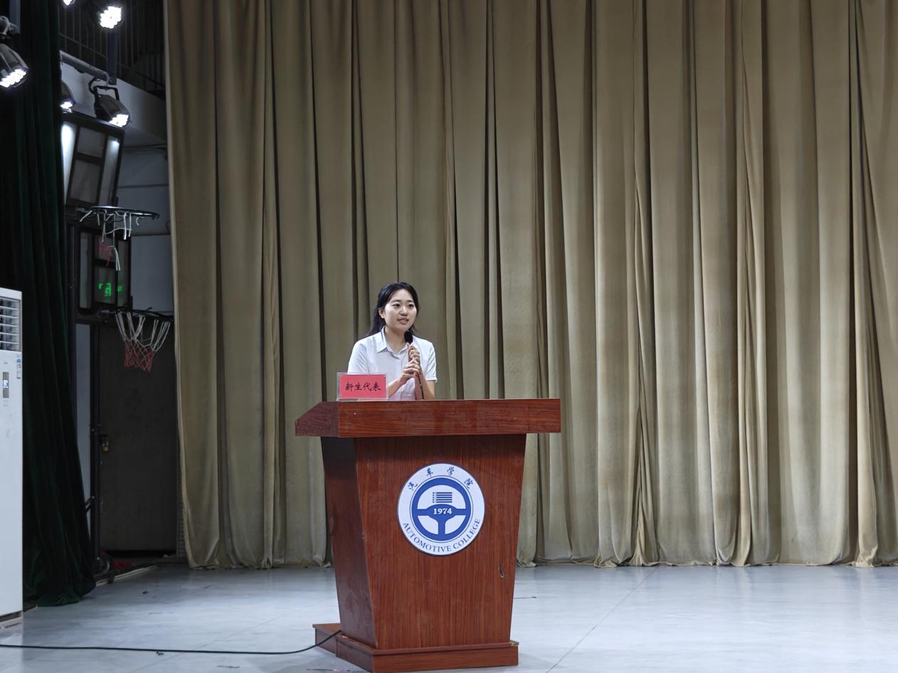 隨后,新生代表孫靜文發(fā)言。她滿懷激動與憧憬,分享了自己對大學生活的期待,表達了與同學們共同努力、在汽車學院追逐夢想的決心,展現(xiàn)出新生們蓬勃的朝氣與積極向上的精神風貌。