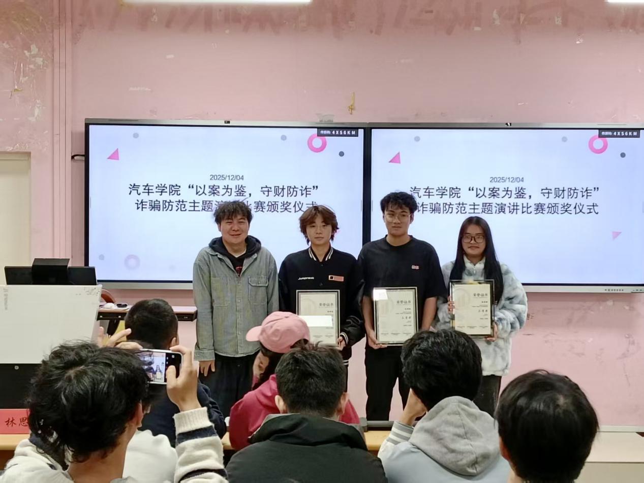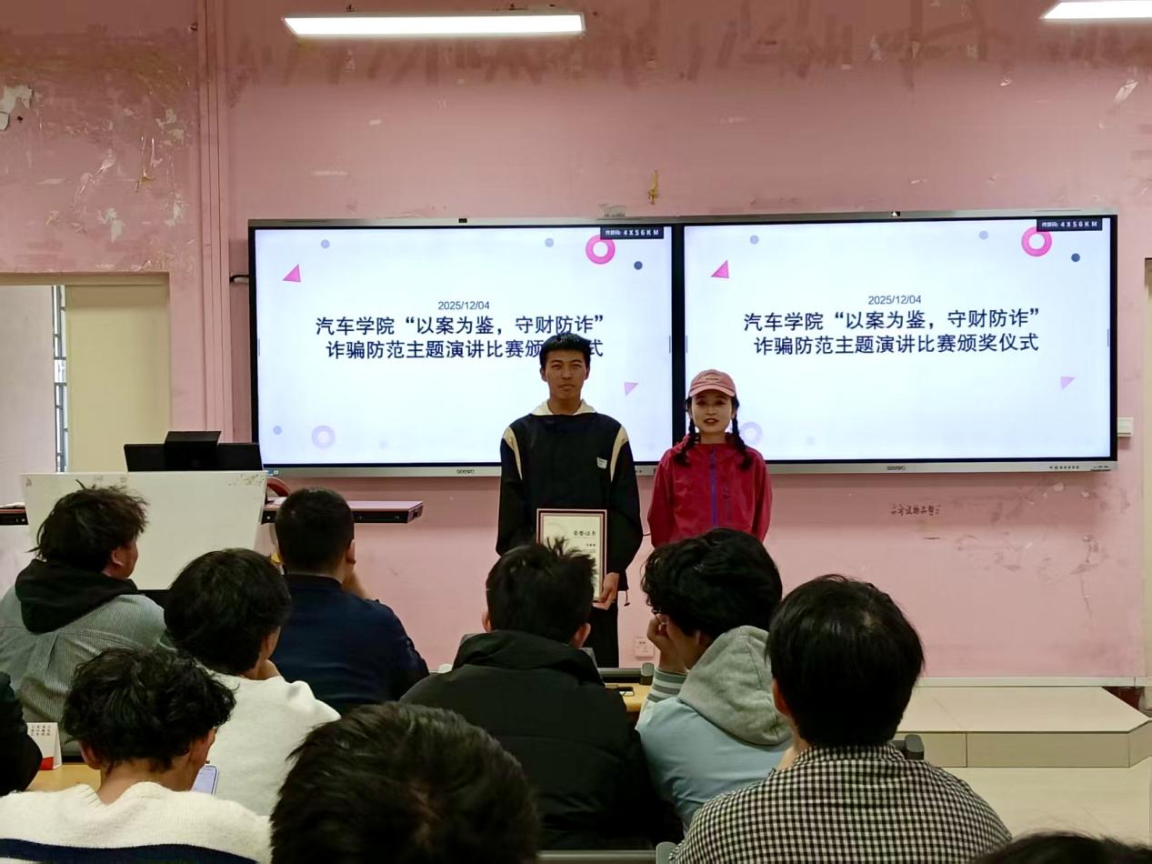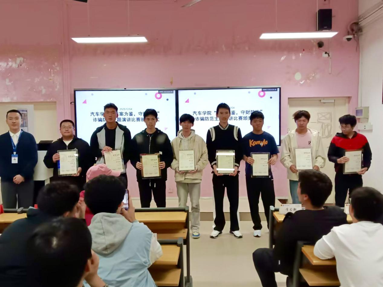 為全面提升廣大在校學(xué)生的防詐意識(shí)和能力,有效預(yù)防和減少涉校電信網(wǎng)絡(luò)詐騙犯罪及其關(guān)聯(lián)犯罪的發(fā)生。汽車(chē)學(xué)院于2025年12月1日晚19:00在福道園26號(hào)樓605教室成功舉辦了“以案為鑒,守財(cái)防詐”防范電信網(wǎng)絡(luò)詐騙主題演講活動(dòng),參賽選手、輔導(dǎo)員、學(xué)院兩委骨干、學(xué)生代表共計(jì)112人參加活動(dòng)。