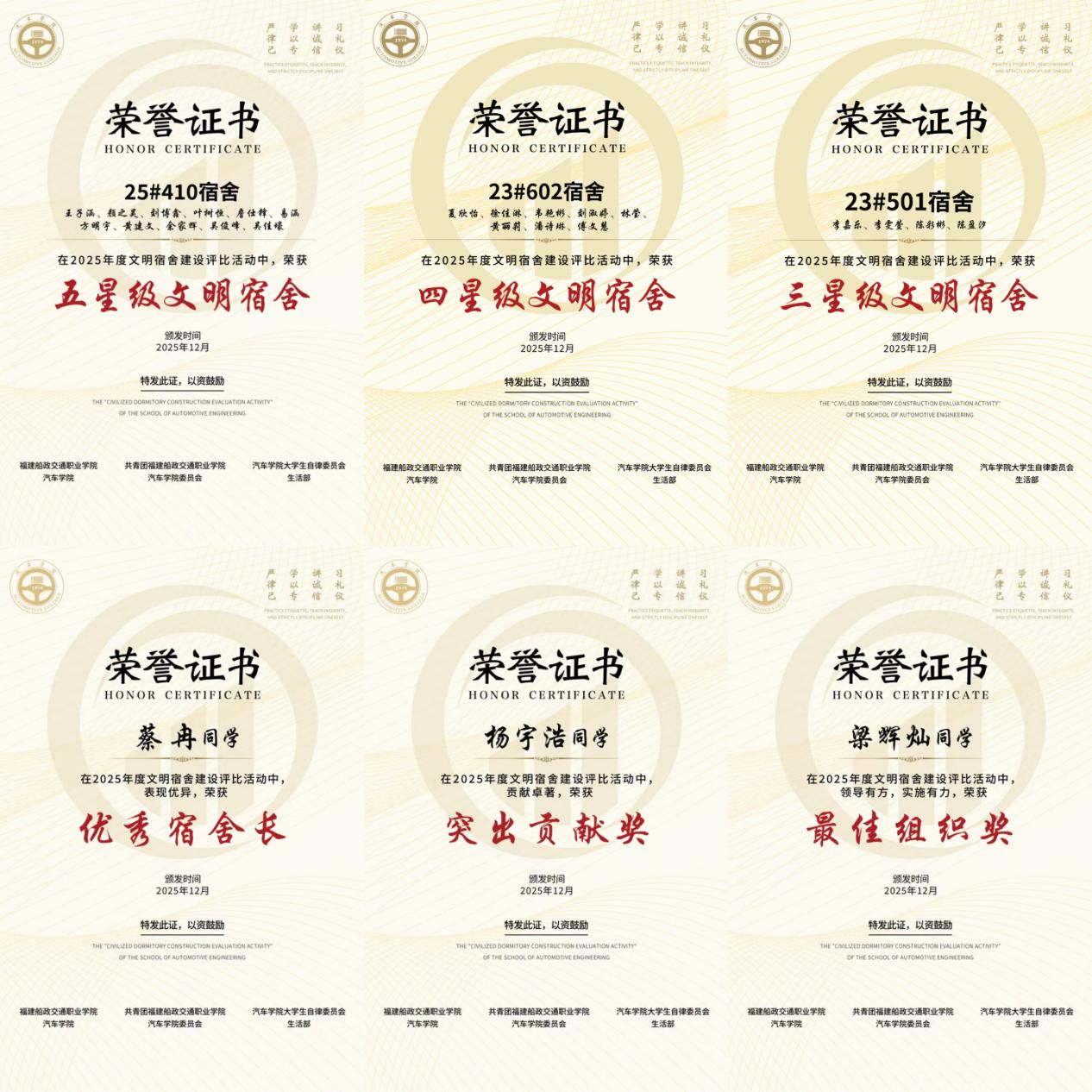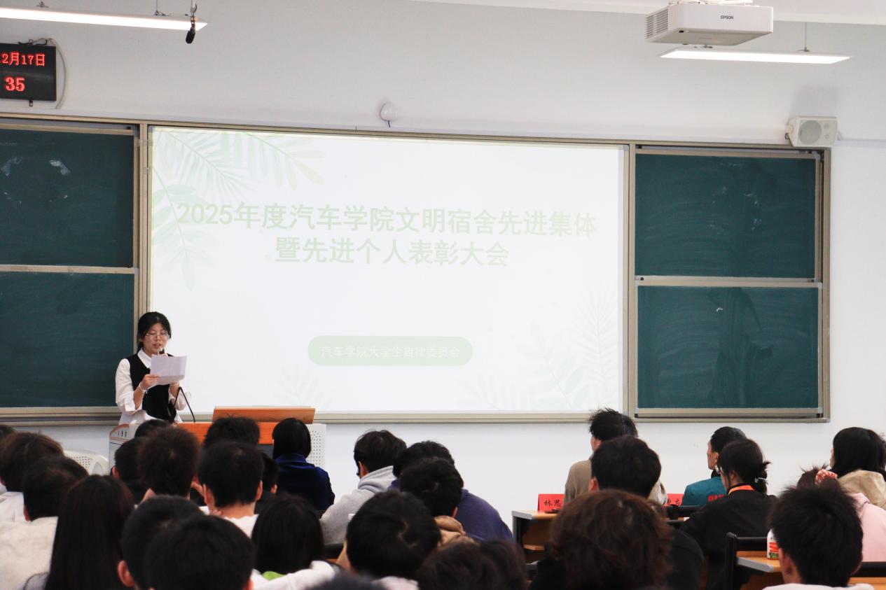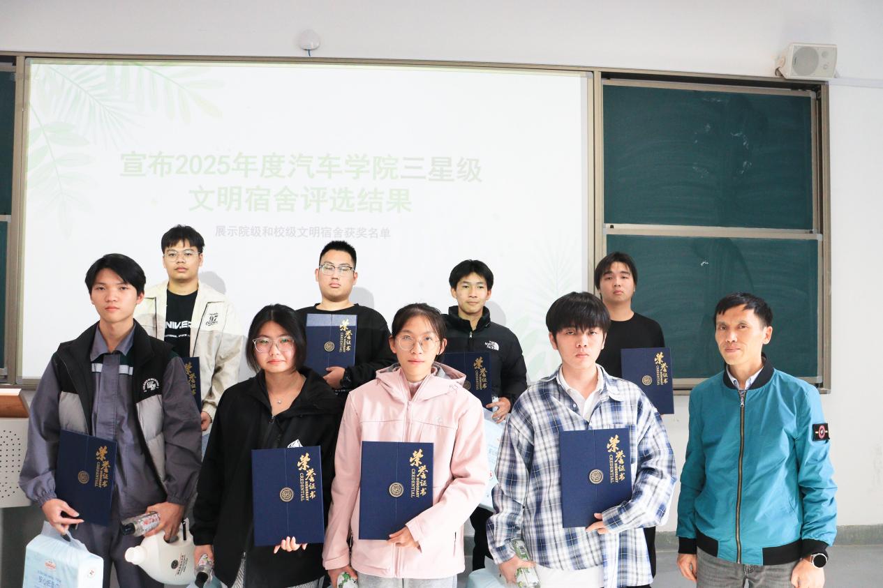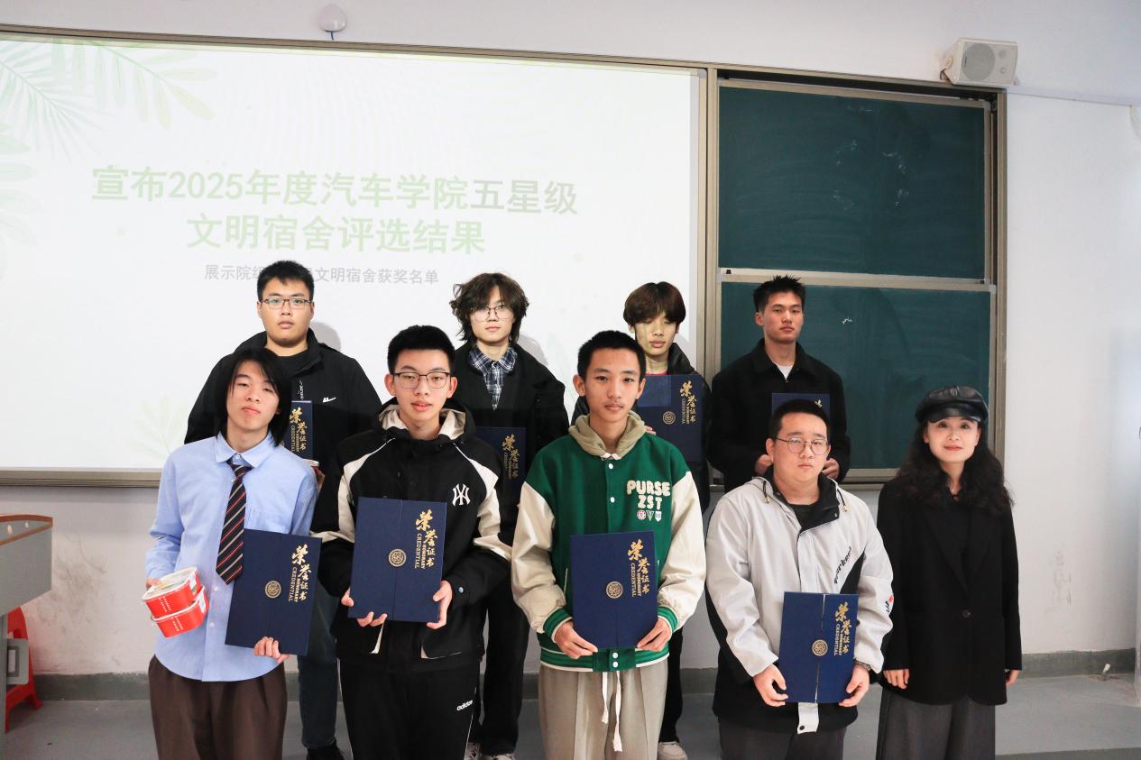 此次表彰大會不僅樹立了文明標桿,更凝聚了建設和諧校園的共識。汽車學院將以此次大會為契機,讓榜樣力量輻射全院,推動更多宿舍成為文明養(yǎng)成的窗口、學業(yè)進步的平臺、情誼凝聚的家園。未來進一步深化“五育融合”理念,完善宿舍建設長效機制,持續(xù)開展多樣化的特色活動,推動思政教育下沉一線,讓宿舍成為全員參與、全員育人的鮮活課堂,助力汽車學子們在優(yōu)良環(huán)境中全面發(fā)展。