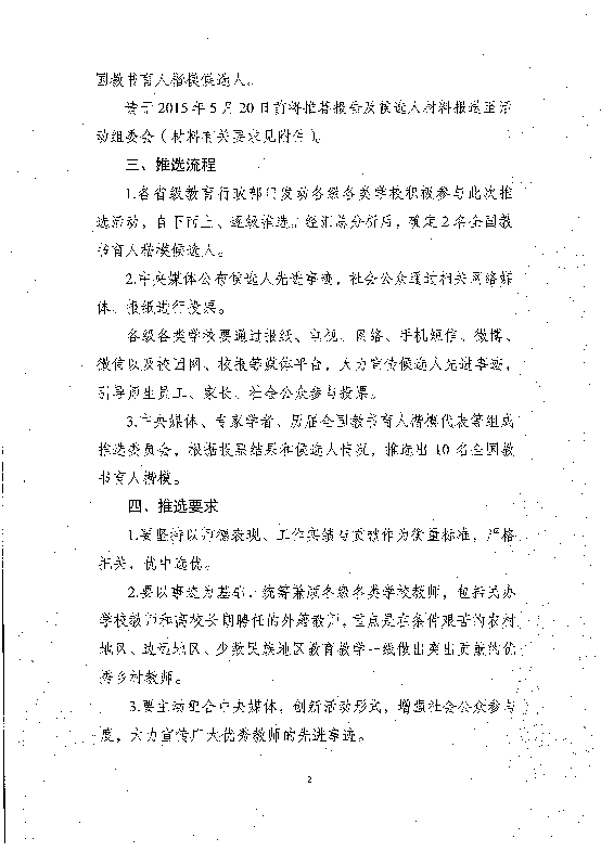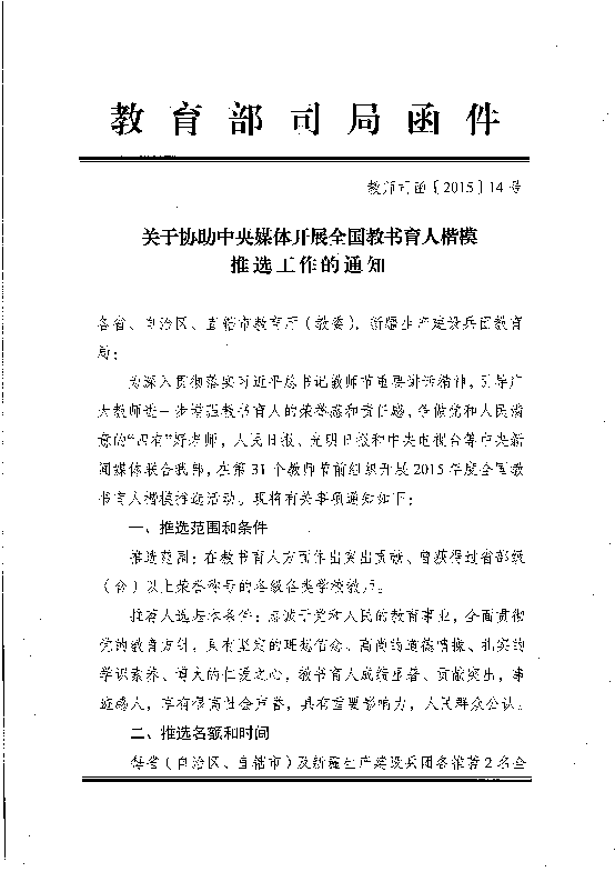 關(guān)于推薦2015年度 全國(guó)教書育人楷模人選的通知