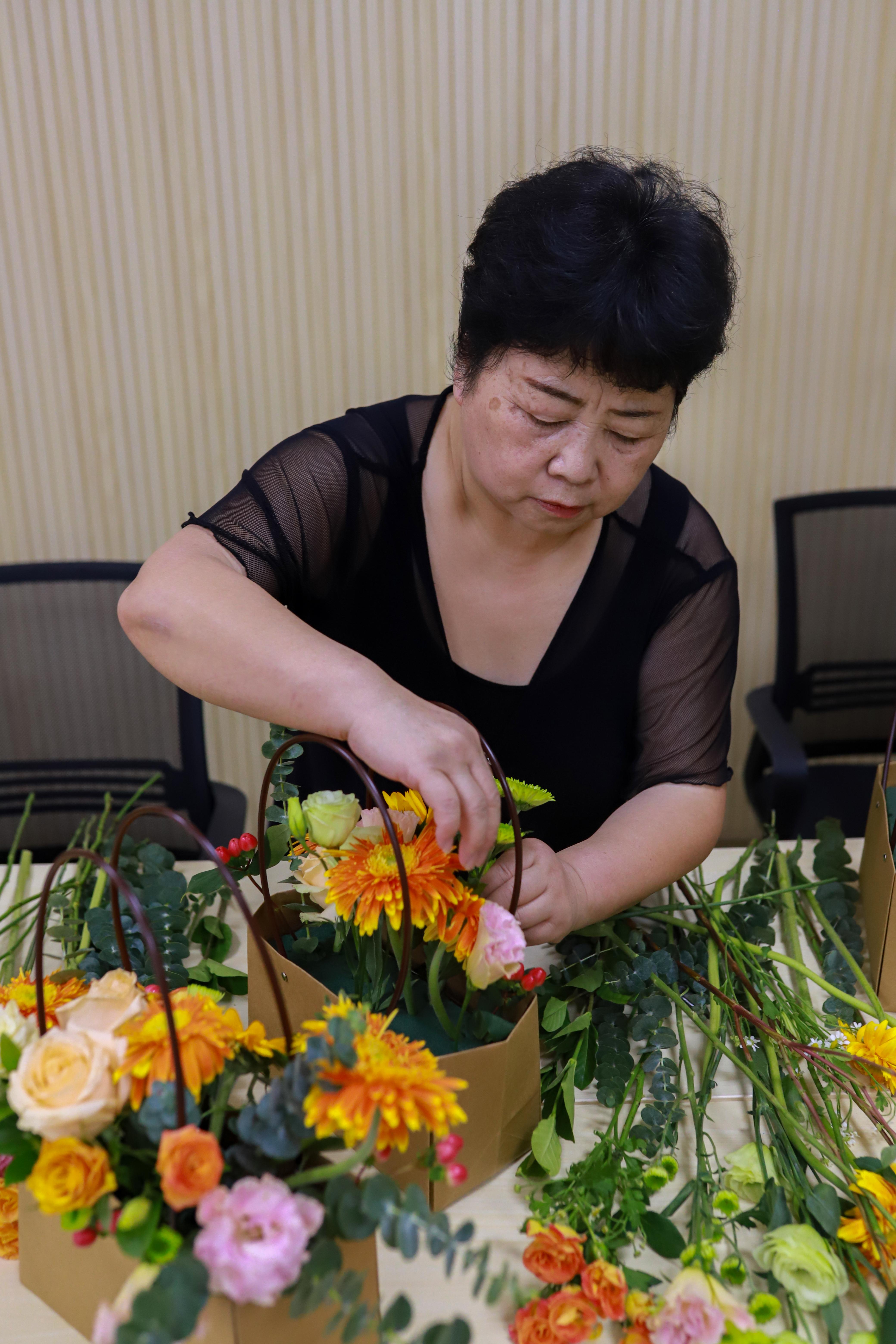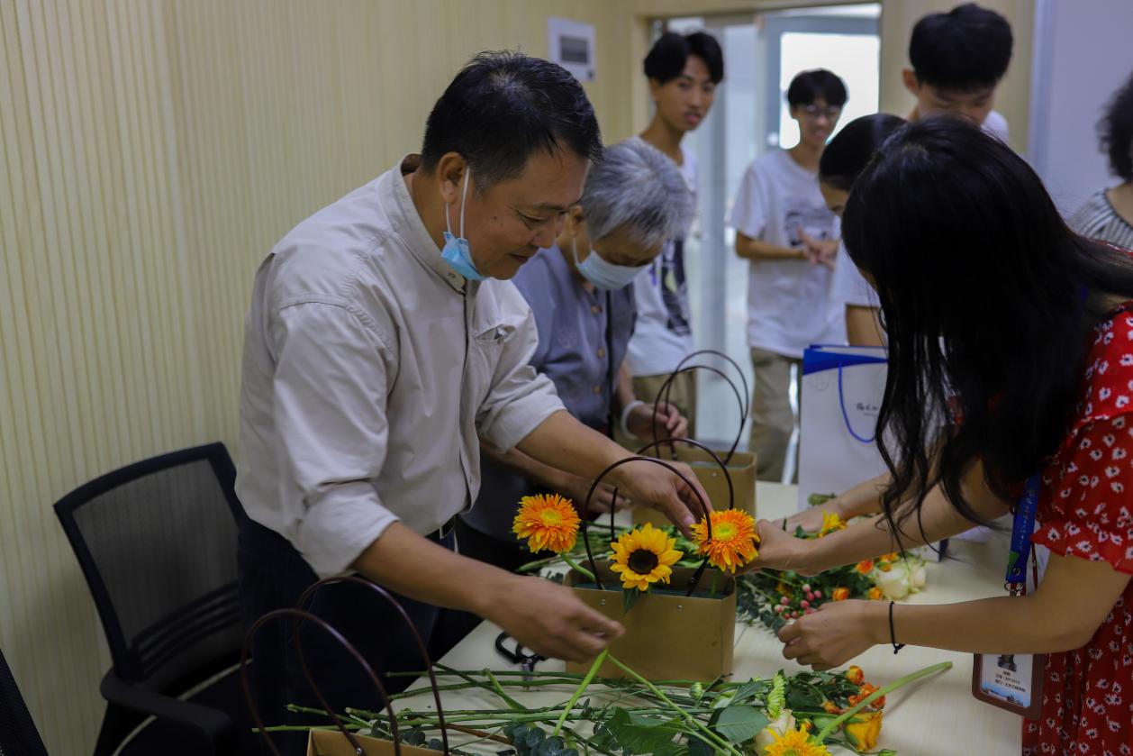 同時(shí),“花開(kāi)重陽(yáng)”花藝課堂在淡淡幽幽的花香和老同志們的熱情期待中開(kāi)課,在花藝?yán)蠋熤v解花藝知識(shí)后,老同志們認(rèn)真開(kāi)始插花,相互之間還不忘交流意見(jiàn),陸續(xù)創(chuàng)作出各種形態(tài),各有千秋的插花作品。悠悠花香,情誼綿長(zhǎng),老同志們對(duì)自己的作品愛(ài)不釋手,連連感謝這次活動(dòng)帶來(lái)的美好體驗(yàn),體驗(yàn)了插花的樂(lè)趣,陶冶了情操。