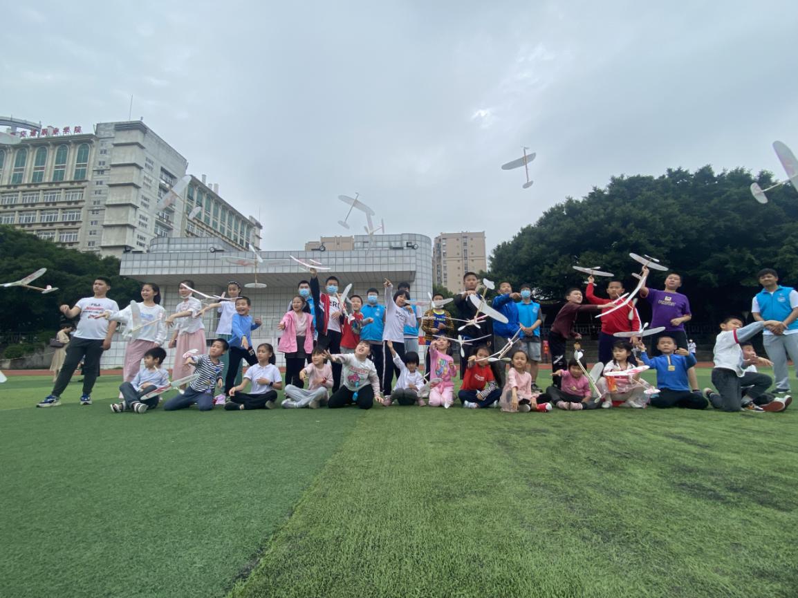熏風(fēng)乍拂,化日方長(zhǎng)。陽光下,孩子們?cè)诶蠋煹闹笇?dǎo)下放飛自己親手制作的飛機(jī)航模,放飛夢(mèng)想和希望。