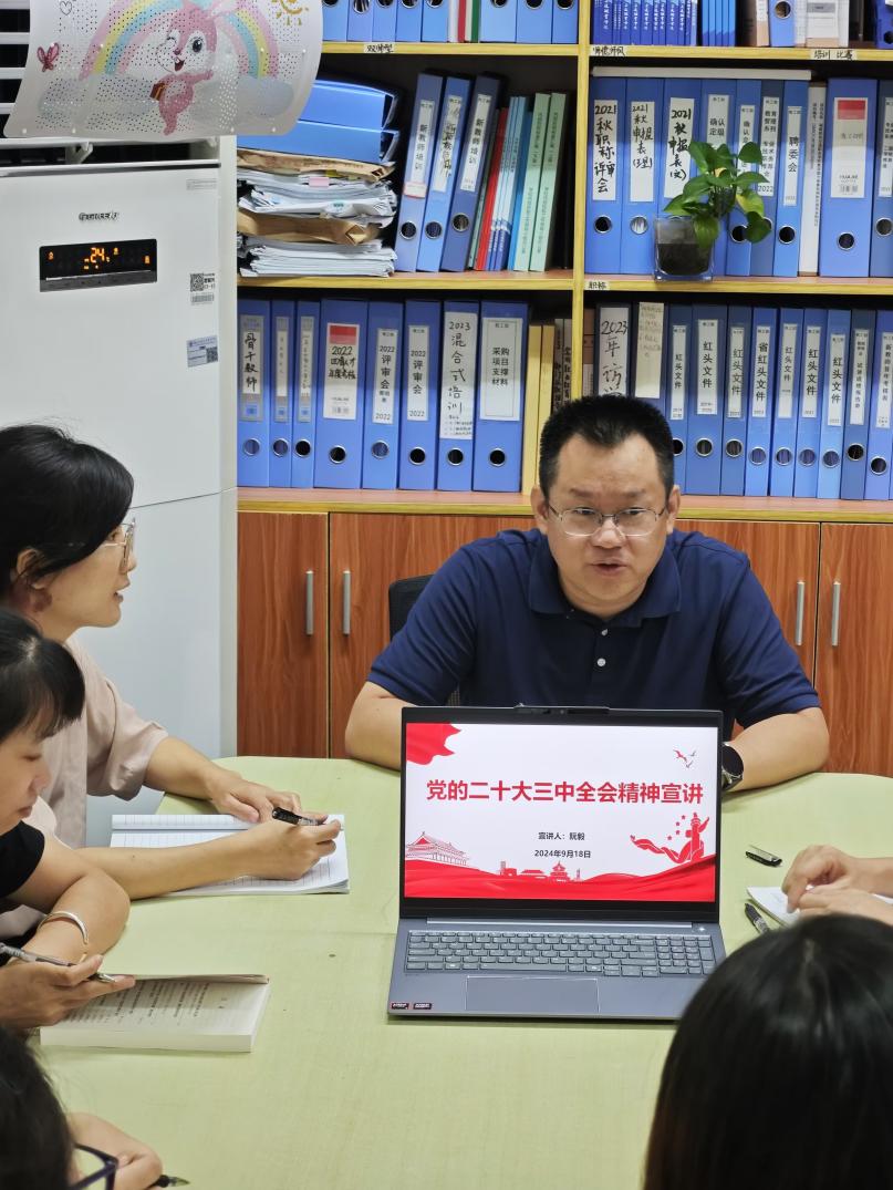2024年9月18日上午,人事處及教師工作部全體黨員學(xué)習(xí)貫徹黨的二十屆三中全會精神宣講會在1號樓320舉行。宣講會由校黨支部書記阮毅同志主持。