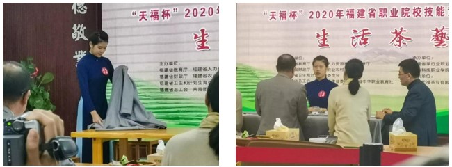 比賽歷時3天,航海技術系中華茶藝賽項由系副主任翁國玲老師和黃建偉老師指導,18級郵輪乘務管理2班鄭瑩瑩同學、19級郵輪乘務管理1班徐詩宇同學、19級郵輪乘務管理3班陶煒鵬同學、林劍鋒同學組成競賽團隊。他們不畏強手、穩(wěn)定發(fā)揮、力克群雄成功衛(wèi)冕福建省職業(yè)技能大賽中華茶藝賽項一等獎。