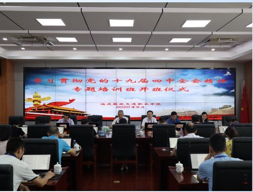 8月26日至28日,學(xué)院舉辦學(xué)習(xí)貫徹黨的十九屆四中全會(huì)精神專題培訓(xùn)班,全體副科級(jí)及以上干部共140余人參加學(xué)習(xí)培訓(xùn)。
