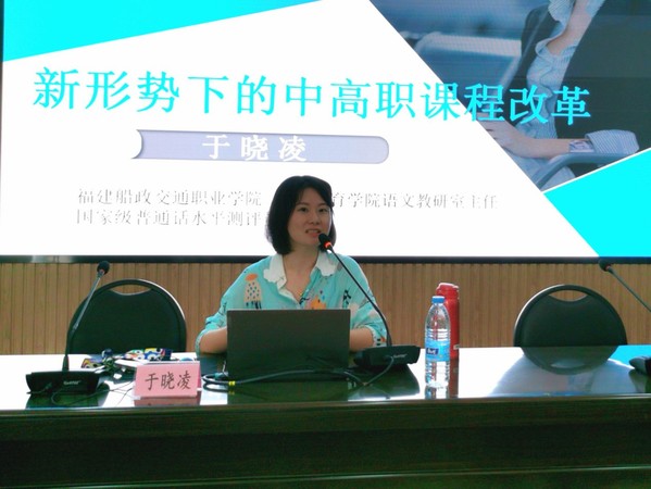 于曉凌老師以目前社會(huì)熱議的“教學(xué)改革”為中心,開設(shè)了主題為“新形勢下的中高職課程改革”的講座,主要從中高職課程改革必然性、國內(nèi)外課程改革現(xiàn)狀、以點(diǎn)帶面——以高職語文為例解析新形勢下的中高職公共基礎(chǔ)課程改革趨勢這三個(gè)大方向,向在場教師介紹了中高職課程改革的必然性和重要性。講座氣氛活躍,引起在場教師們共鳴。