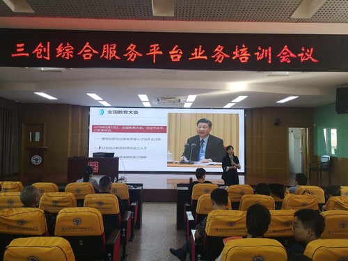 習近平總書記在全國教育大會強調(diào),要“以創(chuàng)造之教育培養(yǎng)創(chuàng)造之人才,以創(chuàng)造之人才造就創(chuàng)新之國家”,把創(chuàng)新創(chuàng)業(yè)教育貫穿于人才培養(yǎng)全過程,讓創(chuàng)新的基因根植于學生之中,培養(yǎng)造就更好適應和引領(lǐng)創(chuàng)新發(fā)展的各類人才。因此,學校創(chuàng)新創(chuàng)業(yè)教育的體系構(gòu)建、創(chuàng)新創(chuàng)業(yè)師資培養(yǎng)就尤為迫切和重要。2020年10月28號,由教務處、創(chuàng)新創(chuàng)業(yè)學院牽頭,組織召開三創(chuàng)平臺業(yè)務培訓會議,分管創(chuàng)新創(chuàng)業(yè)的二級學院領(lǐng)導及聯(lián)系人、專業(yè)教研室主任、創(chuàng)新創(chuàng)業(yè)指導教師、大學生就業(yè)創(chuàng)業(yè)教研室教師參加會議。