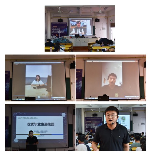 同時(shí),我們還通過(guò)現(xiàn)場(chǎng)視頻連線的方式講述了經(jīng)濟(jì)與管理學(xué)院幾位優(yōu)秀校友的成長(zhǎng)歷程。并特別邀請(qǐng)到2012級(jí)電子商務(wù)專業(yè)的何俊鋒同學(xué)作為船政優(yōu)秀校友代表與在場(chǎng)的同學(xué)們分享了自己求學(xué)及成功創(chuàng)業(yè)的經(jīng)歷,告訴同學(xué)們職業(yè)教育也能成功成才,成就出彩人生,勉勵(lì)同學(xué)們要敢想敢闖敢拼。