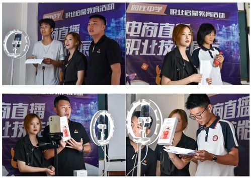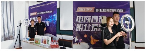 電商直播作為網(wǎng)絡(luò)直播的商業(yè)化應(yīng)用,逐漸成為擴(kuò)大內(nèi)需、助推內(nèi)循環(huán)的新引擎。在本次活動(dòng)中,2019級(jí)市場(chǎng)營(yíng)銷1班許明澤與鄧陳丹兩位學(xué)生通過(guò)現(xiàn)場(chǎng)搭建電商直播間進(jìn)行了電商直播職業(yè)技能的展示。在同學(xué)們的眼中直播的設(shè)備與場(chǎng)景是那么得新奇、有趣,在他們的心中埋下的職業(yè)與夢(mèng)想的種子。通過(guò)觀看哥哥姐姐們的直播展示,臺(tái)下的同學(xué)們興奮不已,躍躍欲試,爭(zhēng)先恐后地上臺(tái)參與到直播體驗(yàn)中。在兩位主播的耐心引導(dǎo)下,參與的同學(xué)們自信地模仿著,直觀地了解職業(yè)教育、認(rèn)識(shí)職業(yè)教育、體驗(yàn)職業(yè)教育的精彩,切身感受到職業(yè)教育的魅力。