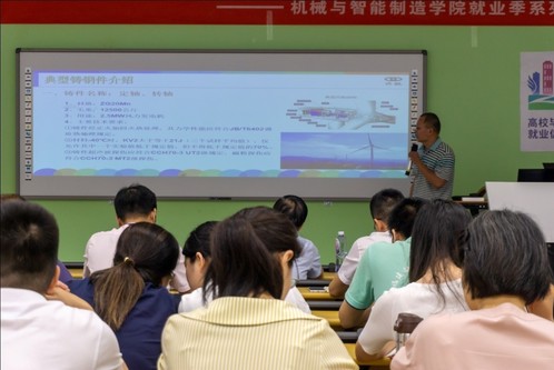 活動伊始,陳水發(fā)副院長代表機械學(xué)院對鄭建斌總工的到來表示了熱烈的歡迎,接著鄭總從“興航重工簡介、典型鑄鋼件介紹、與機械學(xué)院產(chǎn)學(xué)研合作”三個方面做了報告。首先鄭總給我們詳細介紹了福建興航重工有限公司概況、產(chǎn)品類型、企業(yè)榮譽和企業(yè)目標以及企業(yè)開展的科研研究工作等概況。