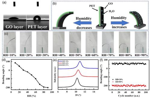 近年來(lái),智能致動(dòng)器由于其驅(qū)動(dòng)方式多樣、形變類(lèi)型多樣、應(yīng)用廣泛等特點(diǎn),已成為智能材料的研究熱點(diǎn)。然而,只能由單一刺激驅(qū)動(dòng)的傳統(tǒng)雙層致動(dòng)器的應(yīng)用領(lǐng)域受到極大限制。我校機(jī)械與智能制造學(xué)院研究團(tuán)隊(duì)致力于智能材料和智能制造領(lǐng)域相關(guān)裝備和器件的研發(fā)和應(yīng)用研究工作,依托省級(jí)智能裝備應(yīng)用技術(shù)協(xié)同創(chuàng)新中心,聯(lián)合福州大學(xué)、福建工程學(xué)院、廈門(mén)理工學(xué)院科研團(tuán)隊(duì)開(kāi)展了諸多有意義的研究工作。本次公開(kāi)發(fā)表的研究基于氧化石墨烯(GO)和聚對(duì)苯二甲酸乙二醇酯(PET)復(fù)合材料的雙響應(yīng)和雙向彎曲致動(dòng)器,旨在開(kāi)發(fā)多響應(yīng)執(zhí)行器以拓寬驅(qū)動(dòng)器的應(yīng)用領(lǐng)域。