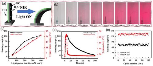 圖3 GO/PET致動(dòng)器的近紅外(NIR)光驅(qū)動(dòng)性能