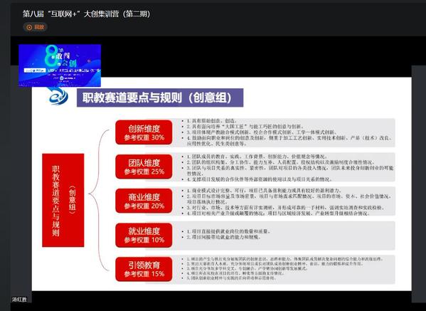 為確保培訓的正常進行,創(chuàng)新創(chuàng)業(yè)學院主動聯(lián)系各職業(yè)院校了解需求,尋找合適的線上培訓平臺,組織報名,對接專家,安排課程,盡心盡力做好集訓準備工作。在大家共同努力下,三天四場的線上培訓順利完成。每場講座全省職業(yè)院校和應用型本科院校師生踴躍參加,培訓組織有序,線上授課順暢,討論互動環(huán)節(jié)氣氛熱烈,參訓的師生表示:本次集訓營讓大家對“互聯(lián)網(wǎng)+”大學生創(chuàng)新創(chuàng)業(yè)大賽的政策有了更加直觀體會和準確認知,明確了大賽項目培育的重點和核心邏輯,提升了項目團隊的參賽信心,為下一階段校賽和省賽打下良好基礎(chǔ)。培訓結(jié)束,我們還安排回放和授課的課件分享,為奮戰(zhàn)在抗疫一線的泉州和廈門職業(yè)院校師生提供再學習機會。