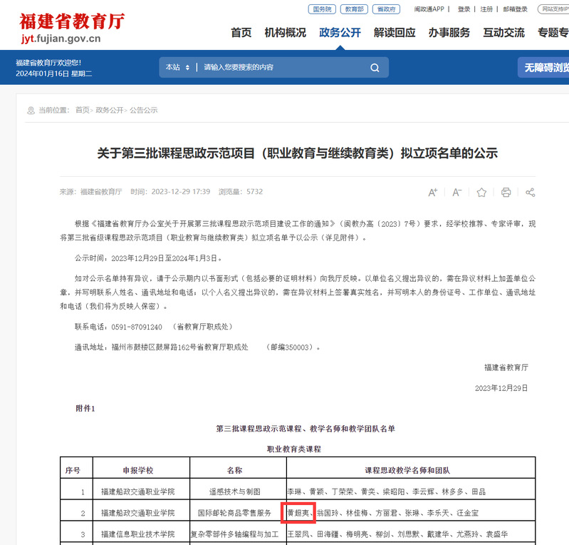 近日,福建省教育廳公布第三批課程思政示范項(xiàng)目(職業(yè)教育與繼續(xù)教育類(lèi))名單,由航海技術(shù)專(zhuān)業(yè)群骨干教師黃超夷主持的《國(guó)際游輪商品零售服務(wù)》課程獲批省級(jí)課程思政示范課程。