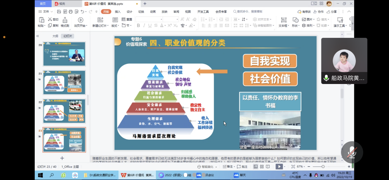 10月19日晚,“優(yōu)·美”教學(xué)工作坊在騰訊會議線上召開了《大學(xué)生職業(yè)生涯與發(fā)展規(guī)劃》課程專題六的集體備課教研活動,職心教研室全體專職教師及兼職授課教師到場參加。
