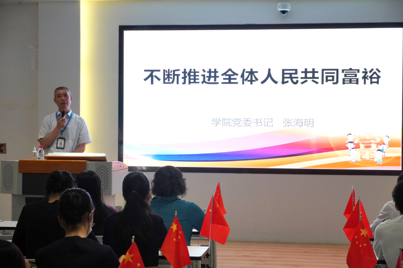 5月24日上午,校黨委書(shū)記張海明在圖書(shū)館三樓黨建館為2021級(jí)軟件技術(shù)1.2班學(xué)生講授《不斷推進(jìn)全體人民共同富?!穼?zhuān)題形勢(shì)與政策課。