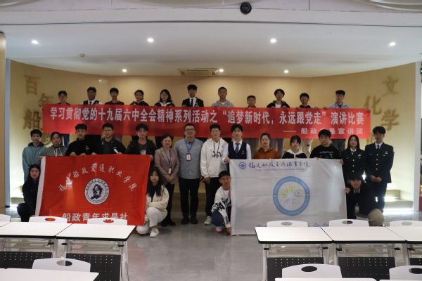 為了深入學(xué)習(xí)貫徹落實黨的十九屆六中全會精神,紀(jì)念學(xué)院辦學(xué)155周年,充分展現(xiàn)船政學(xué)子愛黨愛國的良好精神風(fēng)貌,在馬克思主義學(xué)院指導(dǎo)下,船政青年求是社于12月17日下午18:30在北區(qū)圖書館3樓黨建館教室舉辦了學(xué)習(xí)貫徹黨的十九屆六中全會精神系列活動之“追夢新時代,永遠(yuǎn)跟黨走”演講比賽。本次比賽由馬克思主義學(xué)院馬錦輝老師、林桂梅老師、黃晉京老師擔(dān)任評委,140余名學(xué)生觀看了比賽。