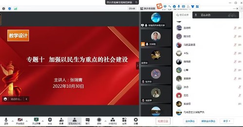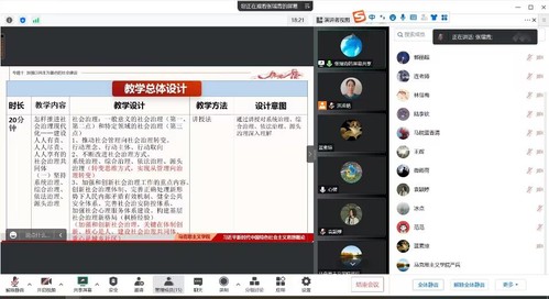 主題是加強民生為重點的社會建設(shè),主講人張瑞青,藍香清、陸李欽進行片段教學(xué),全體教研室教師參與集備。張瑞青老師從教學(xué)重點、教學(xué)難點、學(xué)情分析、教學(xué)建議、教學(xué)總體設(shè)計等幾個方面進行分享,并就如何安排授課結(jié)構(gòu)體系,設(shè)置授課問題鏈,以及課堂互動等方面進行了充分的討論和科學(xué)的設(shè)置,對完善優(yōu)化豐富該專題結(jié)構(gòu)及內(nèi)容發(fā)揮了巨大作用。