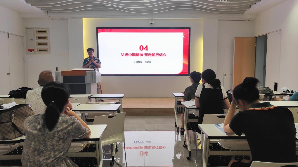 潘倩瀅老師和許思維老師分別針對“文化自信明顯增強(qiáng)”和“弘揚(yáng)中國精神 堅定前行信心”進(jìn)行了無生片段教學(xué)。兩位老師教學(xué)設(shè)計精巧,以貼近學(xué)生生活的案例故事生動展示了理論難點(diǎn),取得了參會教師的一致認(rèn)可。