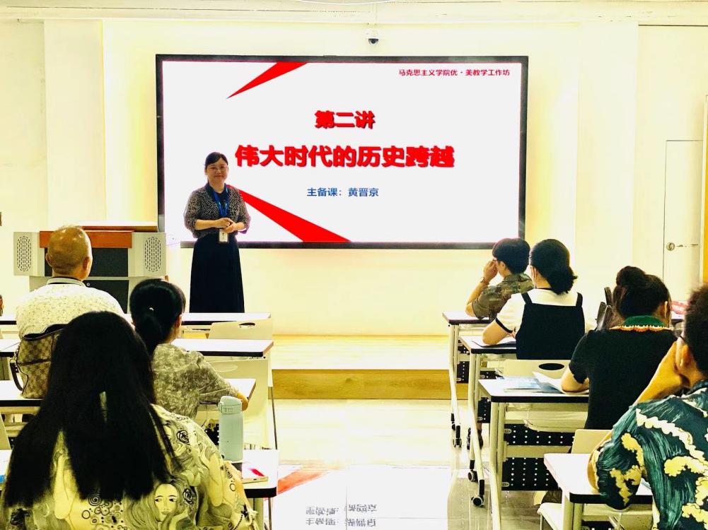 2022年9月21日,馬克思主義學(xué)院“形勢與政策”教研室在黨建館開展了本學(xué)期“優(yōu)·美”教學(xué)工作坊第二次教研活動。本次教研活動圍繞“形勢與政策”課專題二“偉大時代的歷史跨越”展開,由黃晉京老師主講,全體專兼職教師參加了教研活動。