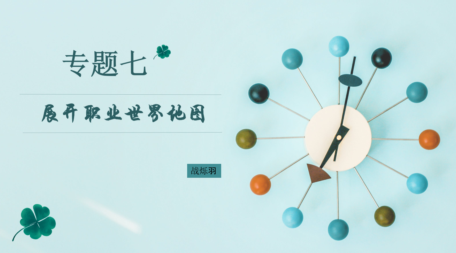 首先由戰(zhàn)偉老師詳細介紹“專題七 展開職業(yè)世界地圖”和“專題八 做好職業(yè)準備”共4課時的整體教學設計。