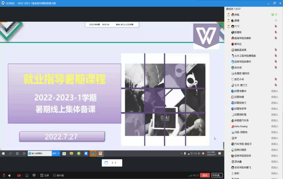 為進一步提高課程教學質量,做好畢業(yè)班就業(yè)指導工作,7月27日晚,馬克思主義學院就業(yè)指導教研室主任薛靖老師組織擔任2020級《就業(yè)指導》課程任課的全體專兼職教師,開展了本學期線上集體備課教研活動。