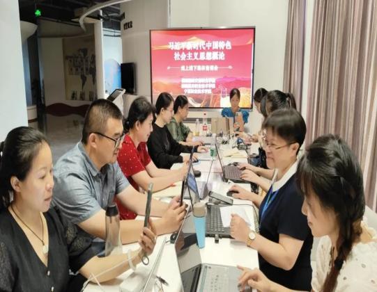 為更好推動習(xí)近平新時代中國特色社會主義思想進教材、進課堂、進頭腦,與增進校際間教學(xué)交流2022年8月28日馬克思主義學(xué)院聯(lián)合新疆昌吉職業(yè)技術(shù)學(xué)院馬克思主義學(xué)院、寧夏職業(yè)技術(shù)學(xué)院馬克思主義學(xué)院近百名思政教師開展一次《習(xí)近平新時代中國特色社會主義思想概論》線上線下集體備課,這也是“優(yōu)·美”教學(xué)工作坊舉辦本學(xué)期第一次教學(xué)工坊活動。本次教研的內(nèi)容首先由福建船政交通職業(yè)學(xué)院馬克思主義學(xué)院洪凌艷分享課程總體介紹和教學(xué)建議,接著由江冰老師擔(dān)任 “專題一 馬克思主義中國化的新飛躍”主講,新疆昌吉職業(yè)技術(shù)學(xué)院馬克思主義學(xué)院張瑜、福建船政交通職業(yè)學(xué)院馬克思主義學(xué)院嚴兵和寧夏職業(yè)技術(shù)學(xué)院馬克思主義學(xué)院郝瑾潔分別做片段教學(xué)。