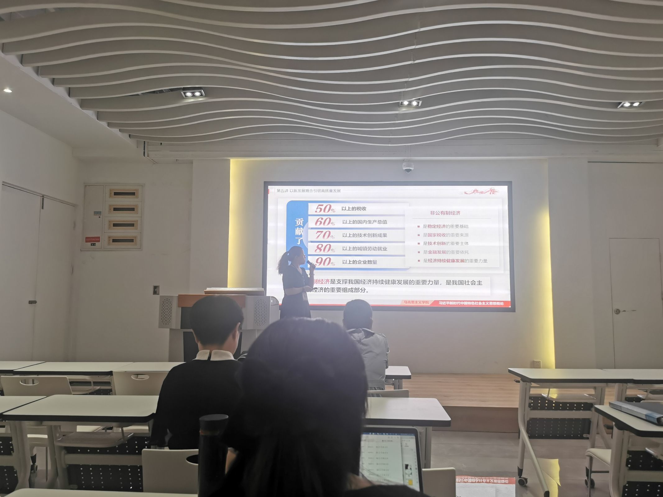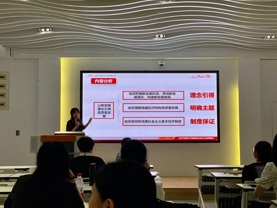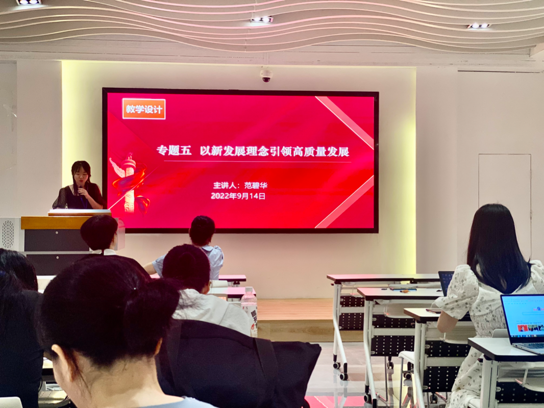 2022年9月14日,馬克思主義學院“毛澤東思想和中國特色社會主義理論體系概論”教研室全體專兼職教師在圖書館三樓黨建館開展了“優(yōu)·美”教學工作坊教研活動。本次教研的內(nèi)容是《習近平新時代中國特色社會主義思想概論》課的專題五————以新發(fā)展理念引領高質(zhì)量發(fā)展,由范碧華老師擔任主講。