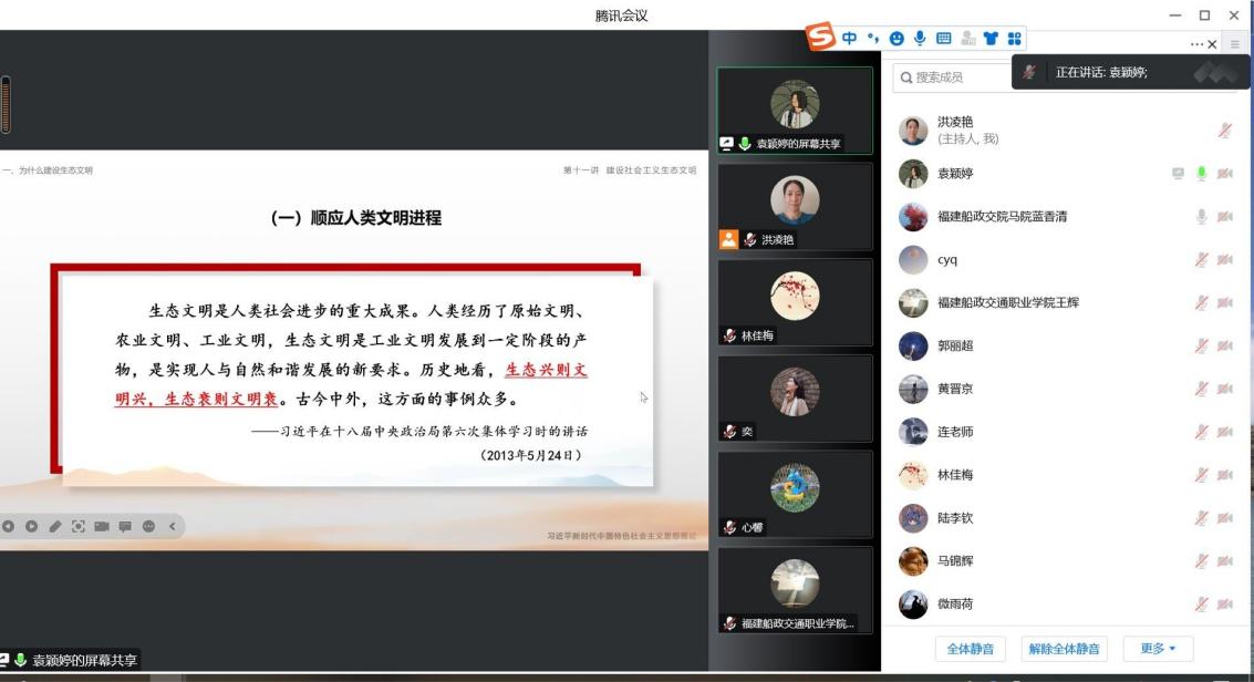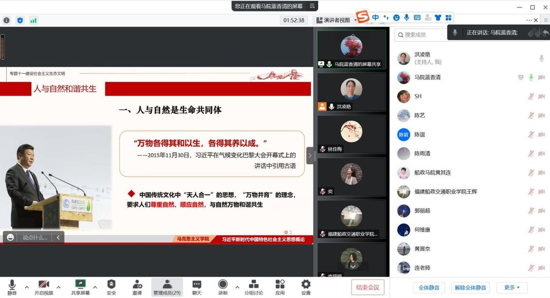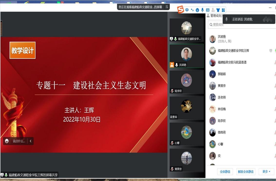 馬克思主義學(xué)院“習(xí)近平新時(shí)代中國(guó)特色社會(huì)主義思想概論”教研室全體專兼職教師于2022年10月30日在騰訊會(huì)議開展了“優(yōu)·美”教學(xué)工作坊教研活動(dòng)。本次教研的內(nèi)容是本課程的“專題十一 建設(shè)社會(huì)主義生態(tài)文明”,由王輝老師擔(dān)任主備課人。