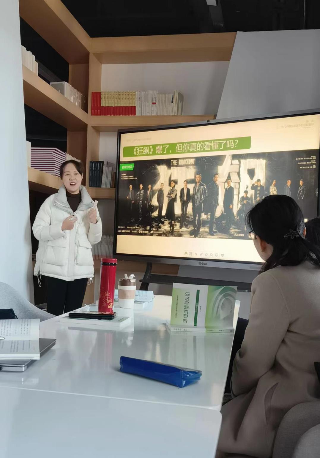 江暉老師和陳雨清老師分別做了片段教學(xué)分享,江暉老師分享的片段是《當(dāng)代中國(guó)發(fā)展進(jìn)步的精神指引》,分享過(guò)程中江老師選用了目前熱播劇《狂飆》和翟天臨學(xué)術(shù)造假案作為典型案例,講授過(guò)程侃侃而談,揮灑自如,效果良好。