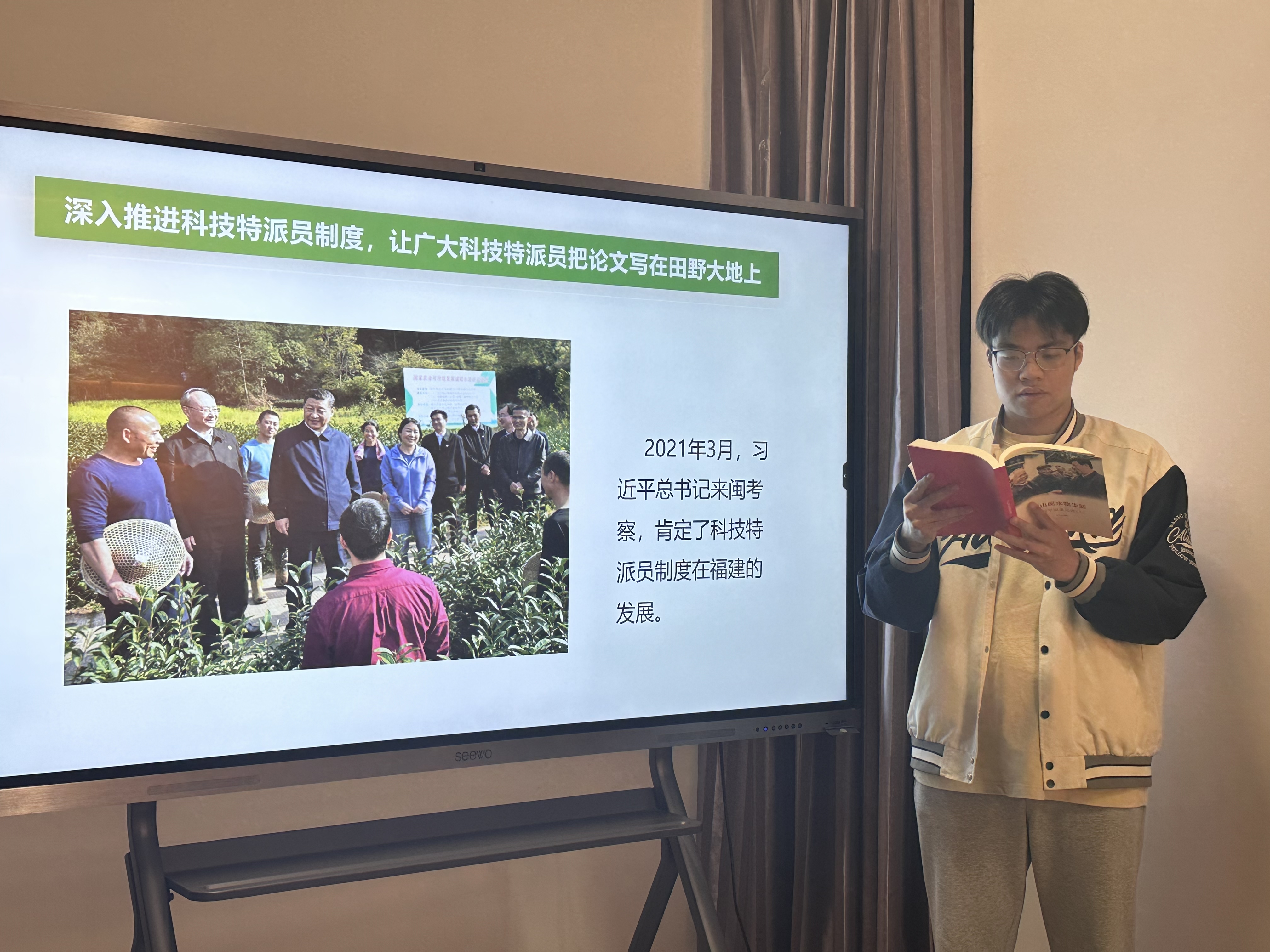 今日,與老師和同學們一起閱讀了《閩山閩水物華新——習近平福建足跡》這本書,我覺得非常有意義。在閱讀習近平總書記在福建17年半的工作經(jīng)歷中,我覺得作為青年大學生,我們要不斷地加強自身專業(yè)技能和思想道德水平的提升,真正地將論文寫在田野大地上,努力成為有理想、敢擔當、能吃苦、肯奮斗的新時代好青年。