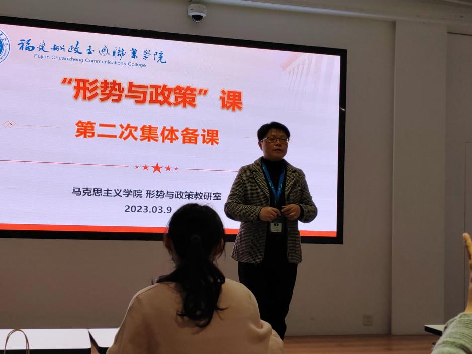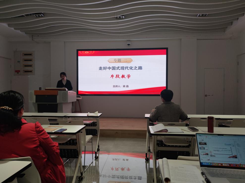 2023年3月9日,馬克思主義學院“形勢與政策”教研室在黨建館開展了本學期“優(yōu)·美”教學工作坊第二次教研活動。本次教研活動圍繞“形勢與政策”課專題二“走好中國式現(xiàn)代化之路”展開,由嚴兵老師主講,石莎和梁晶老師進行無生片段教學,全體任課教師參加了教研活動。