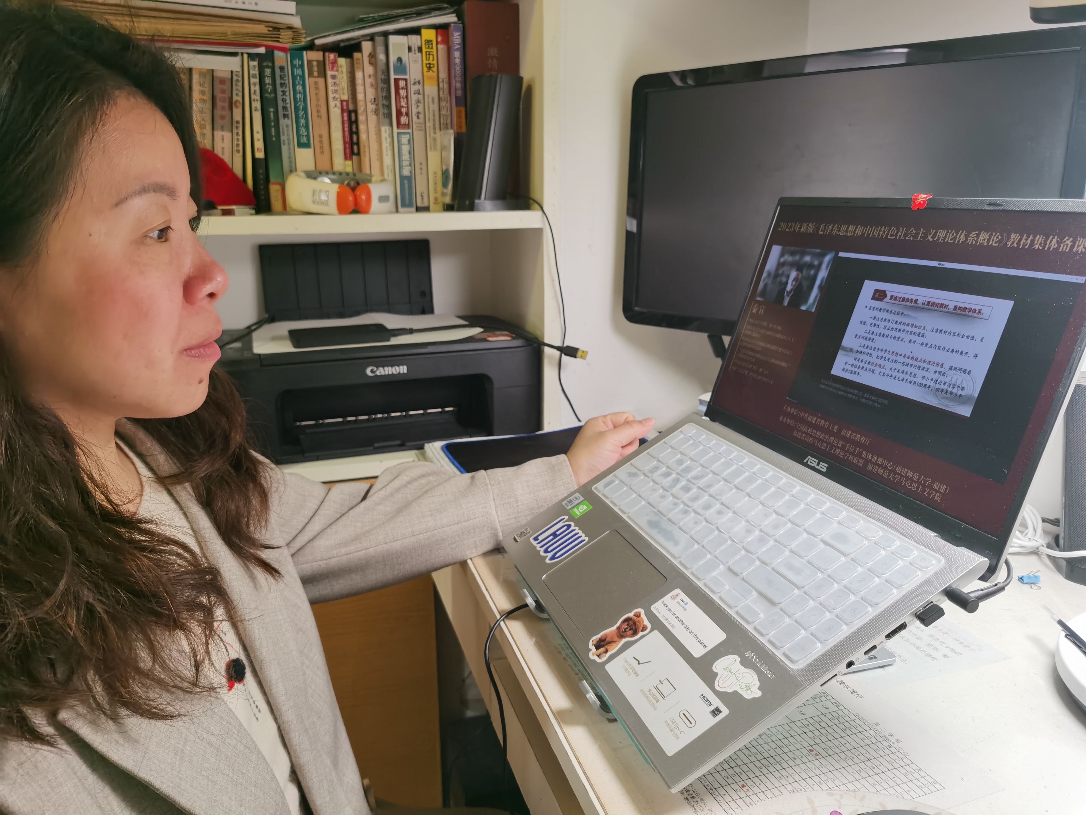 青年教師 范碧華:中國共產(chǎn)黨始終高度重視在做到兩個(gè)相結(jié)合的基礎(chǔ)上,與時(shí)俱進(jìn)地推進(jìn)馬克思主義中國化時(shí)代化。理論創(chuàng)新不停滯,理論武裝就不能停止。本次新版教材深入融合黨的二十大精神,作為一名毛概課教師,我們有責(zé)任有義務(wù)學(xué)深悟透黨的二十大精神,真正把握新版教材的設(shè)計(jì)思路。在教學(xué)過程中緊緊圍繞實(shí)現(xiàn)中華民族偉大復(fù)興這一主題,以馬克思主義中國化時(shí)代化為重點(diǎn),以中國特色社會(huì)主義為主線,把握中國式現(xiàn)代化道路的歷史邏輯。持續(xù)有力推進(jìn)黨的二十大精神進(jìn)教學(xué)、進(jìn)課堂、進(jìn)學(xué)生頭腦。
