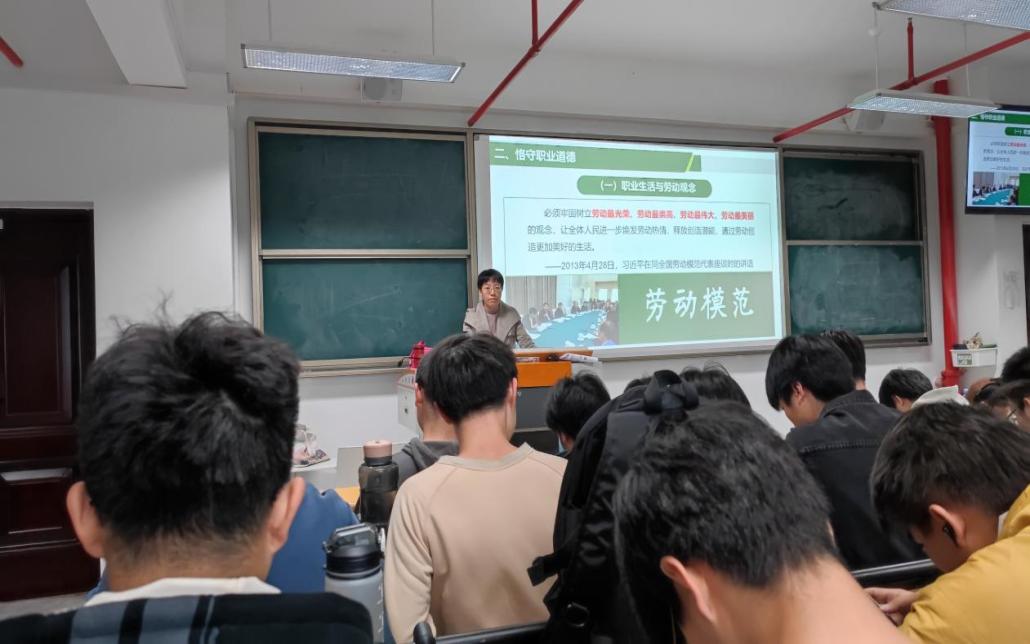 江暉老師在給2022級現(xiàn)代物流管理1、2班講授“職業(yè)生活與勞動觀念”